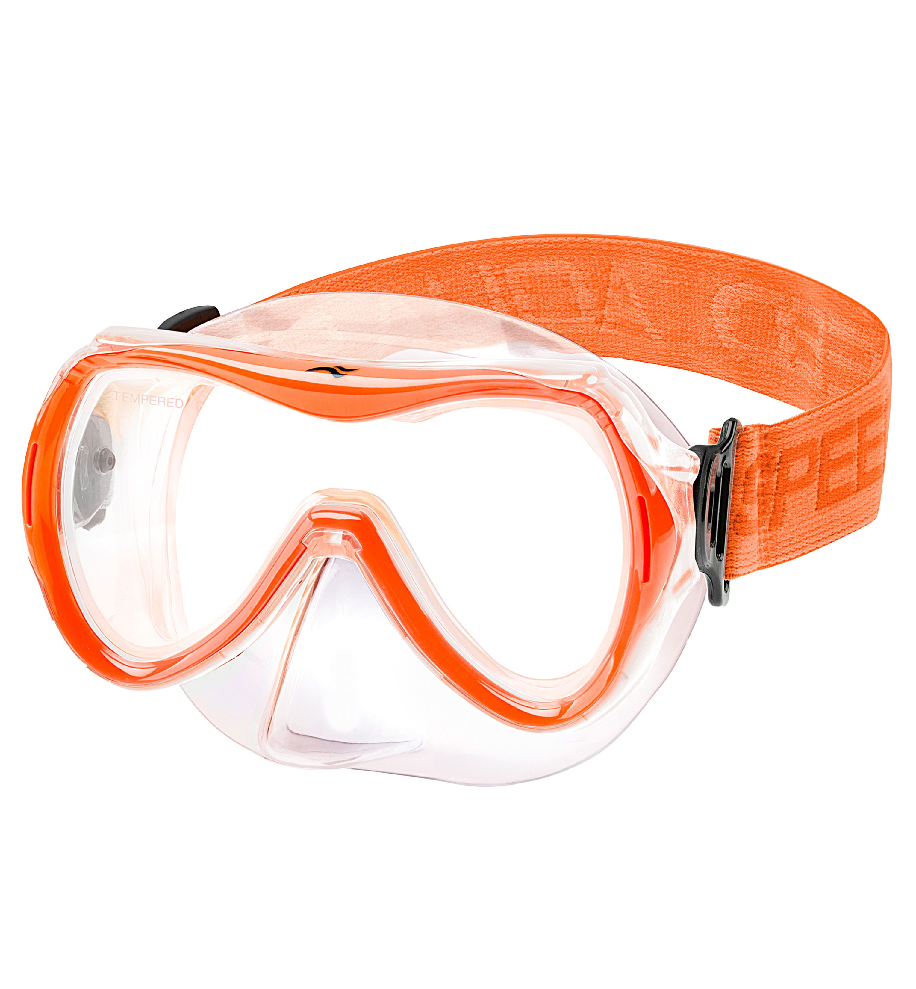 Das weiche, flexible Silikon passt sich optimal an das Gesicht an und verhindert zuverlässig das Eindringen von Wasser. Selbst bei längeren Tauchgängen bleibt die Maske angenehm zu tragen und sorgt für ein komfortables, sicheres Gefühl. Der weiche Stoffriemen liegt angenehm auf dem Kopf und sieht dabei auch noch modern aus. Mit dem EASY-ADJUST-System lässt sich der Gurt schnell und präzise an die Kopfform des Kindes anpassen – für einen sicheren Halt ohne Verrutschen.