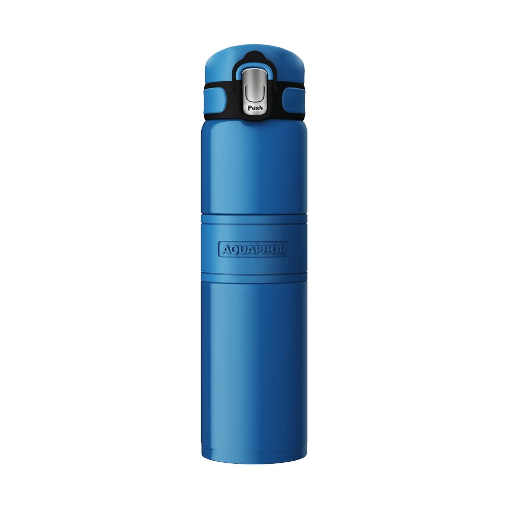 AQUAPHOR Thermo Trinkflasche aus Edelstahl 480ml - Edelstahl Trinkflaschen sind mit zwei Schichten Edelstahl zuverlässig isoliert, um die Temperatur heißer und kalter Getränke halten zu können. Diese elegante Thermoflasche hat ein beliebtes Fassungsvermögen von 480 ml – genug, um bei langen Spaziergängen, Wanderungen, Reisen, im Büro oder im Fitnessstudio mit Flüssigkeit versorgt zu bleiben. Der auslaufsichere Deckel lässt sich leicht öffnen. Die Thermo- Trinkflasche ist aus hochwertigem Edelstahl gefertigt und hat eine Soft-Touch-Silikonoberfläche, die die Thermokanne leicht zu greifen hält, damit sie nicht aus der Hand rutscht. AQUAPHOR THERMO Trinkflasche - Edelstahl-Trinkflasche Material doppeltes Edelstahl. Zuverlässiger Sicherheitsverschluss schützt vor Auslaufen des Getränks Produktmaße (BxHxT): 62mm x 250mm x 62mm Volumen - Kapazität: 480ml Produktgewicht: 315g Farbe Blau