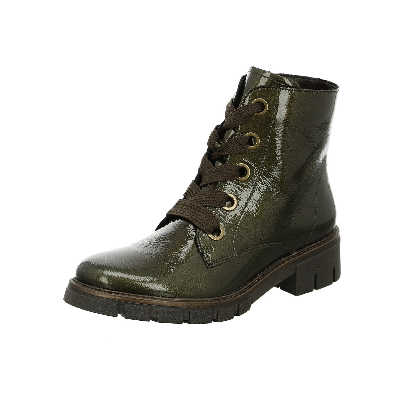 Super softes und dennoch robustes Leder wurde als Obermaterial für diesen lässigen Boot im Bikerstil verwendet. Da der Schuh mit einem Textilfutter ausgestattet ist, kann man ihn wunderbar auch an besonders kalten Herbst- und Wintertagen tragen und hat immer mollig warme Füße. Auch die extra dicke und markant profilierte Sohle sorgt für eine gute Wärmeisolierung. Впередhin trumpft dieser lässige Stiefel mit der innovativen HighSoft Technologie auf. Diese verbindet das softe Oberleder mit einer bequemen Decksohle und sorgt so für sehr weichen Auftritt. Dämpfende Funktion hat auch das weich gepolsterte Wechselfußbett dass sich wunderbar an die Fußform anpasst. Besondere Bequemlichkeit bietet der Schuh dank der Kombination aus Schnürung und Reißverschluss. Der Reißverschluss ermöglicht ein schnelles An- und Ausziehen. Die extra breiten Senkel sehen zusammen mit den großen Metallösen nicht nur toll aus, sondern erlauben auch die optimale Anpassung. Besondere Trittsicherheit verleiht der Blockabsatz mit der breiten Auftrittsfläche zusammen mit der profilierten Sohle. Kombinieren Sie diesen leichten Boot mit einer Röhrenjeans und einem Oversize Pullover für einen lässigen und entspannten Freizeitstil.