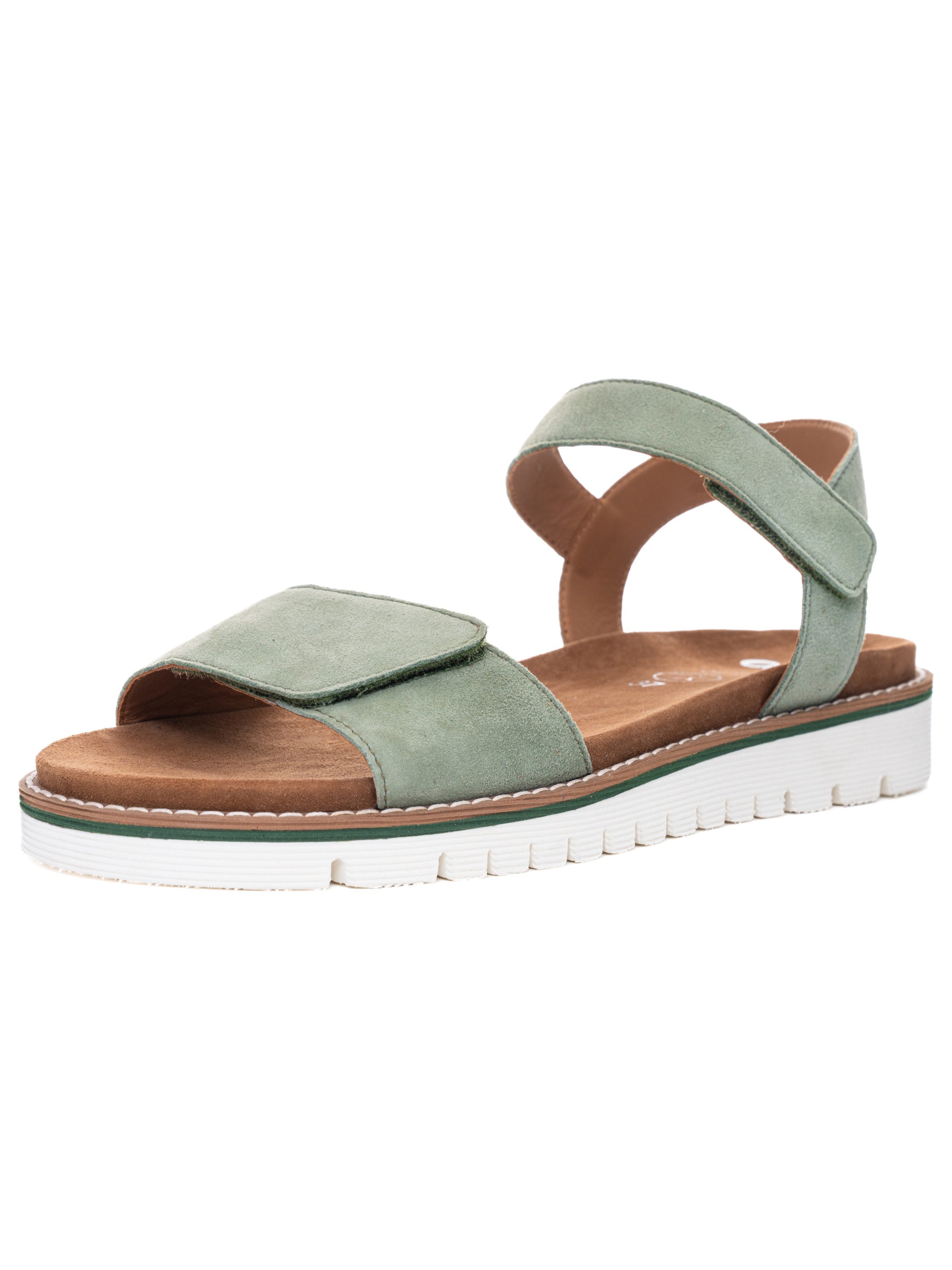 Mit dem Obermaterial aus Veloursleder sind die Schuhe weich und langlebig. Die EVA-Sohle der Pantoletten ist profiliert und sorgt für mehr Rutschfestigkeit auf unebenem Untergrund. Dank dem Keilabsatz wird eine angenehme Höhe erreicht, die sowohl Komfort als auch Stil bietet. Mit ihrer Weite F bieten diese Pantoletten eine bequeme und passgenaue Form für schmale bis normale Füße. Wir empfehlen, eine Размер größer zu bestellen, da der Schuh klein ausfällt.