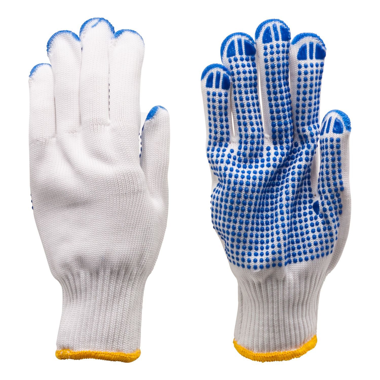 Baumwoll - / Polyester - Strickhandschuh Blaue PVC-Noppen Mit Strickbund Leichte Ausführung Sehr griffsicher und rutschfest Atmungsaktiv Ohne Nähte Gute Passform und guter Tragekomfort Gute Abriebfestigkeit Größe: 9 Karton a 300 Paar