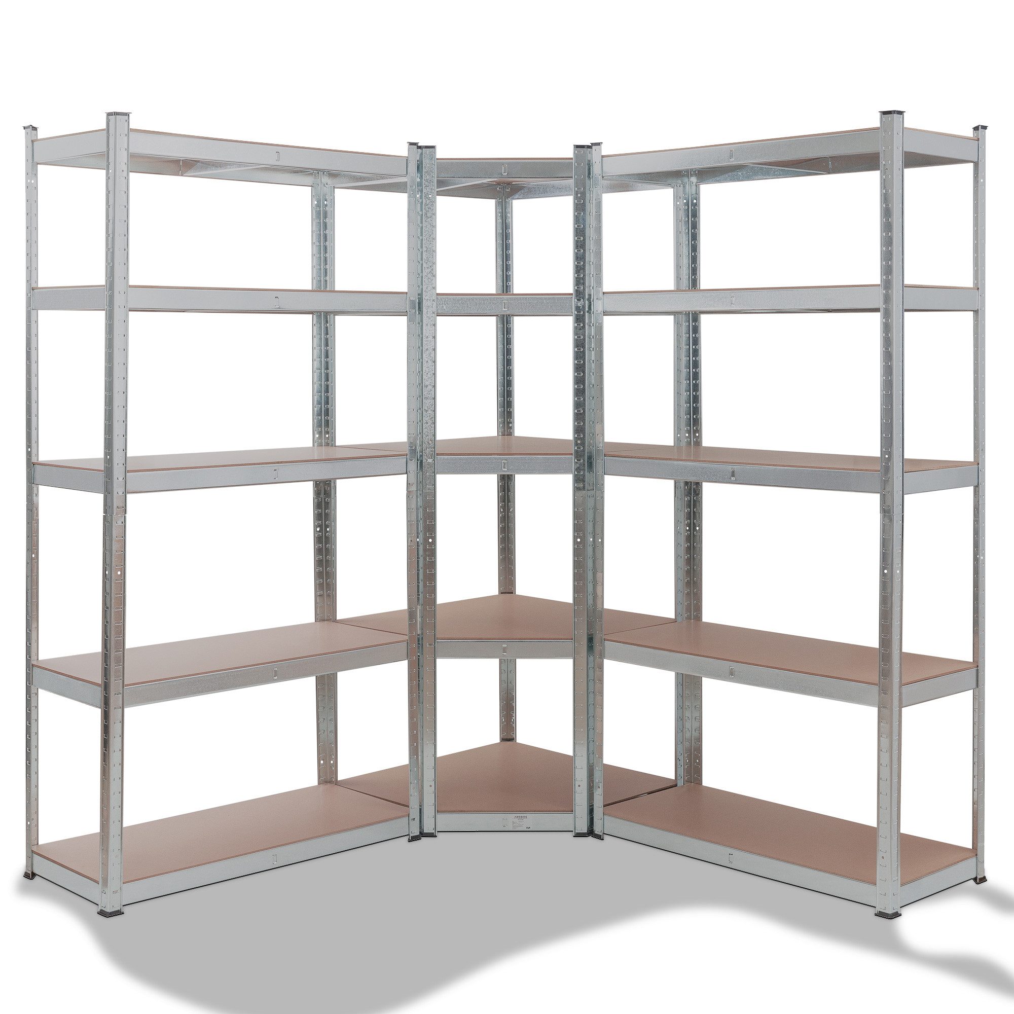Mit unseren AREBOS Allrounder nutzen Sie die Ecken optimal aus. Das Lagerregal besteht aus hochwertig verzinktem Stahl. Die Streben der Einlegeböden sorgen für hohe Stabilität.