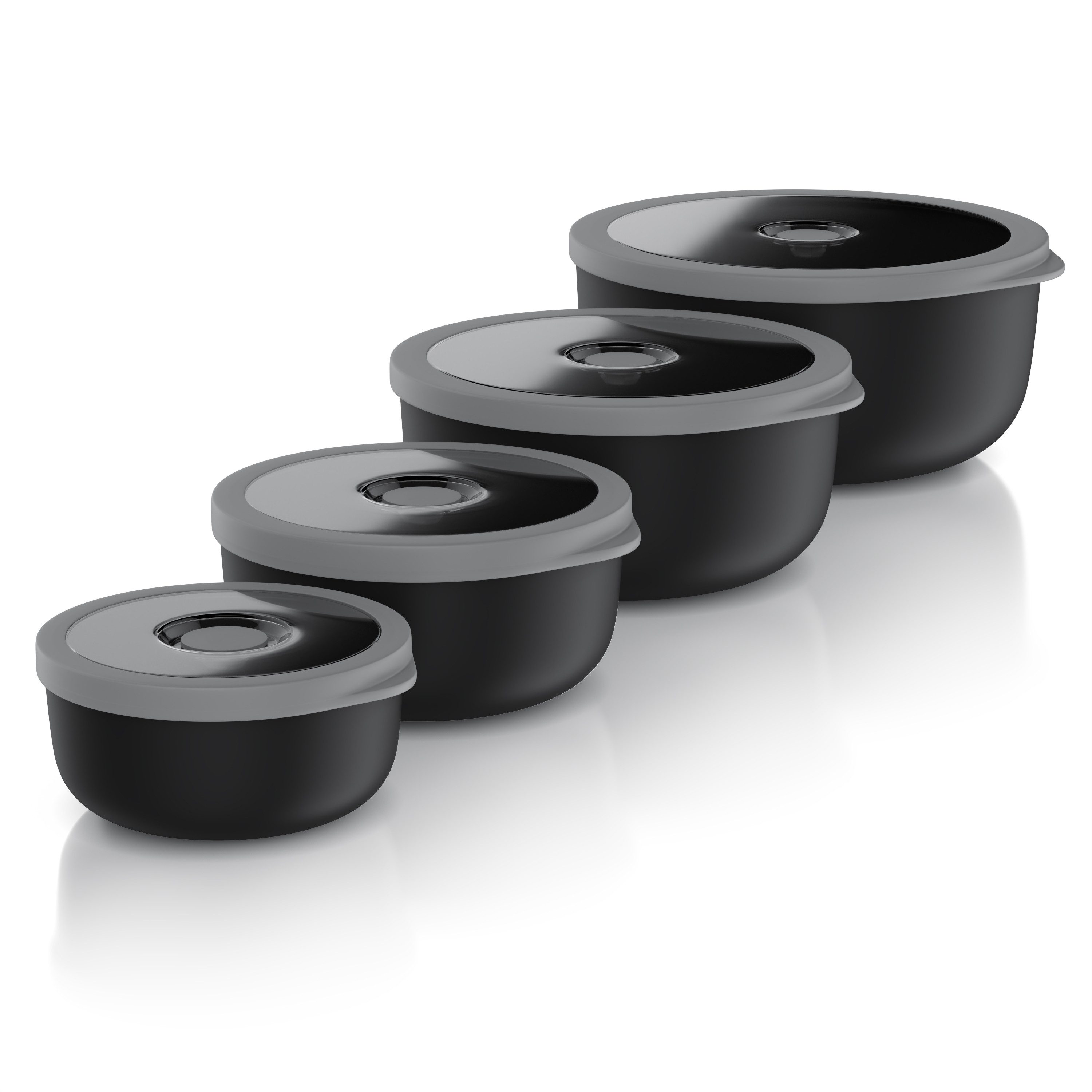 Farbe: schwarze Schüssel mit grauen Deckeln