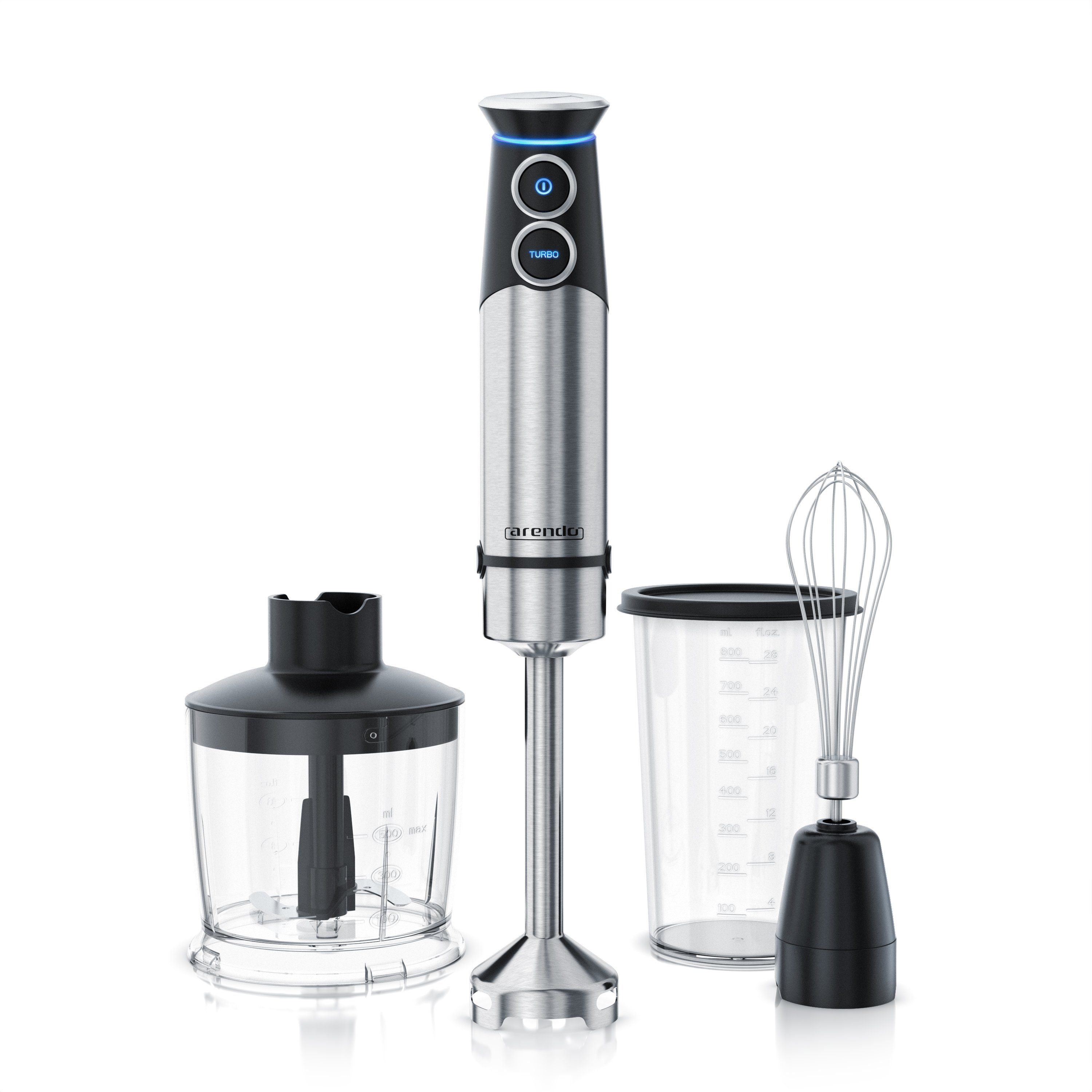 Lieferumfang - Arendo Stabmixer inkl. Mixfuß + Schneebesen + 500 ml Zerkleinerer +