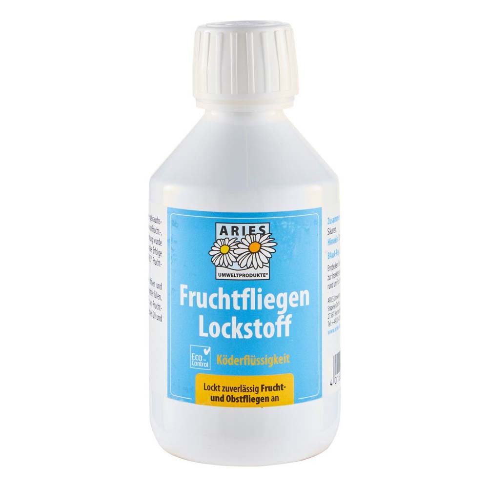 Gebrauchsfertig - u. a. zur Befüllung der original ARIES-Fruchtfliegenfalle zum Monitoring von Frucht-, Obst- und Essigfliegen. Völlig ungiftige Wirkstoffkombination aus Fruchtauszügen und organischen Säuren. Sehr gute Lockwirkung! Optimaler Erfolg wird nur im Zusammenwirken mit einem guten Fallenfabrikat erzielt; sonst besteht die Gefahr, dass ein großer Teil der kleinen Lästlinge entkommt. Deshalb unser Tipp: verwenden Sie die neue ARIES-Fruchtfliegenfalle - nicht größer als sie sein muss, diskret und wiederverwendbar. Ein gelber Trichter auf der Falle beugt einem nachträglichen Entkommen der Lästlinge vor und erhöht durch die gelbe Farbe die Attraktivität für die ungeliebten Gäste. Die kleine Öffnung des Trichters sorgt außerdem dafür, dass auch ein Umkippen der Falle nicht zum Auslaufen der Lockflüssigkeit führt. Die ARIES-Fruchtfliegenfallen sind im 2er Set mit einer Flasche Lockstoff erhältlich. Baua-Reg-Nr.: N-75523 Biozidprodukte vorsichtig verwenden. Vor Gebrauch stets Etikett und Produktinformationen lesen. Hinweise zur Handhabung und LagerungDie ARIES-Fruchtfliegenfalle öffnen und bis zur Markierung auf der Falle mit dem Lockmittel füllen. Die Falle wieder schließen und dort platzieren, wo Fruchtfliegen gehäuft auftreten. Temperaturen zwischen 20 und 35°C erhöhen die Lockwirkung.