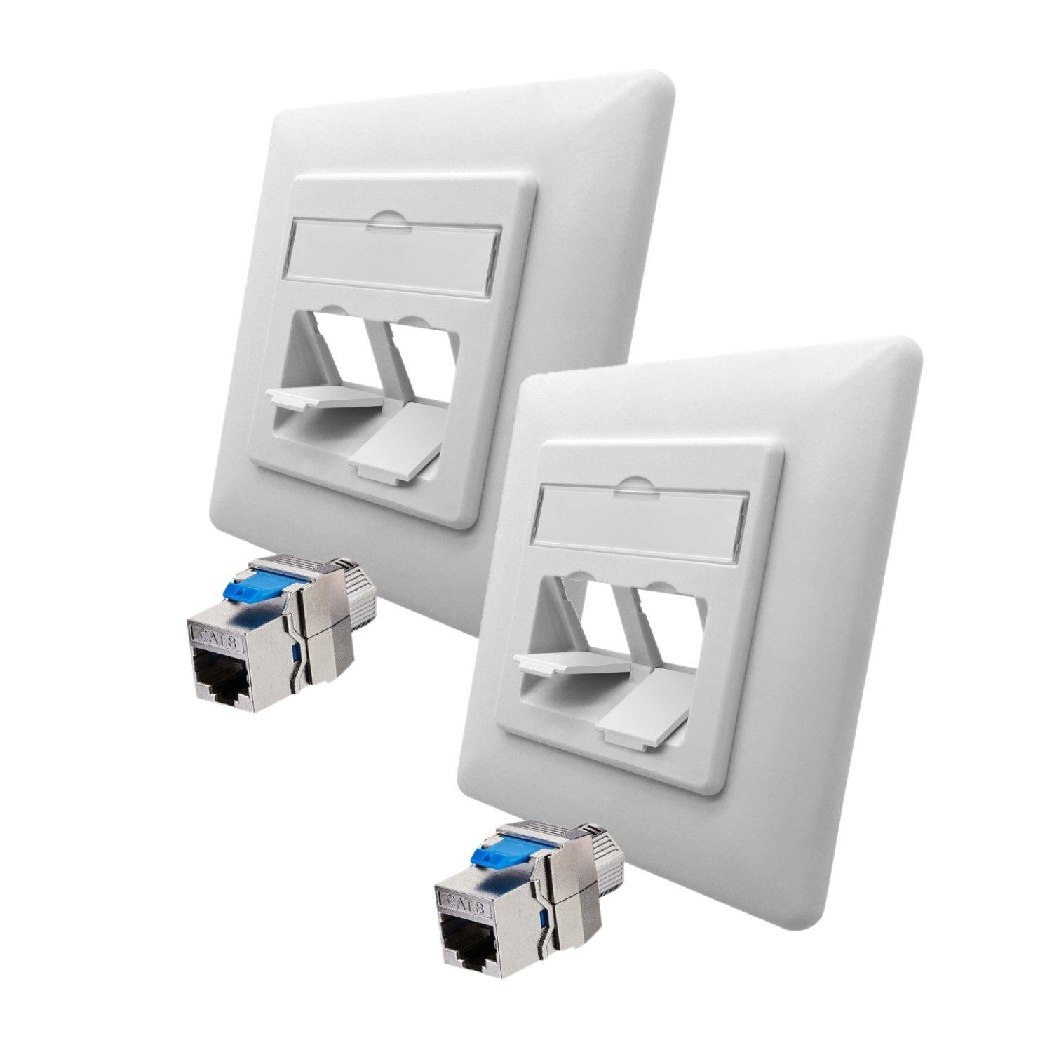 2x Universal Cat8.1 Netzwerkdose mit Sichtfenster inkl. Beschriftungseinlage