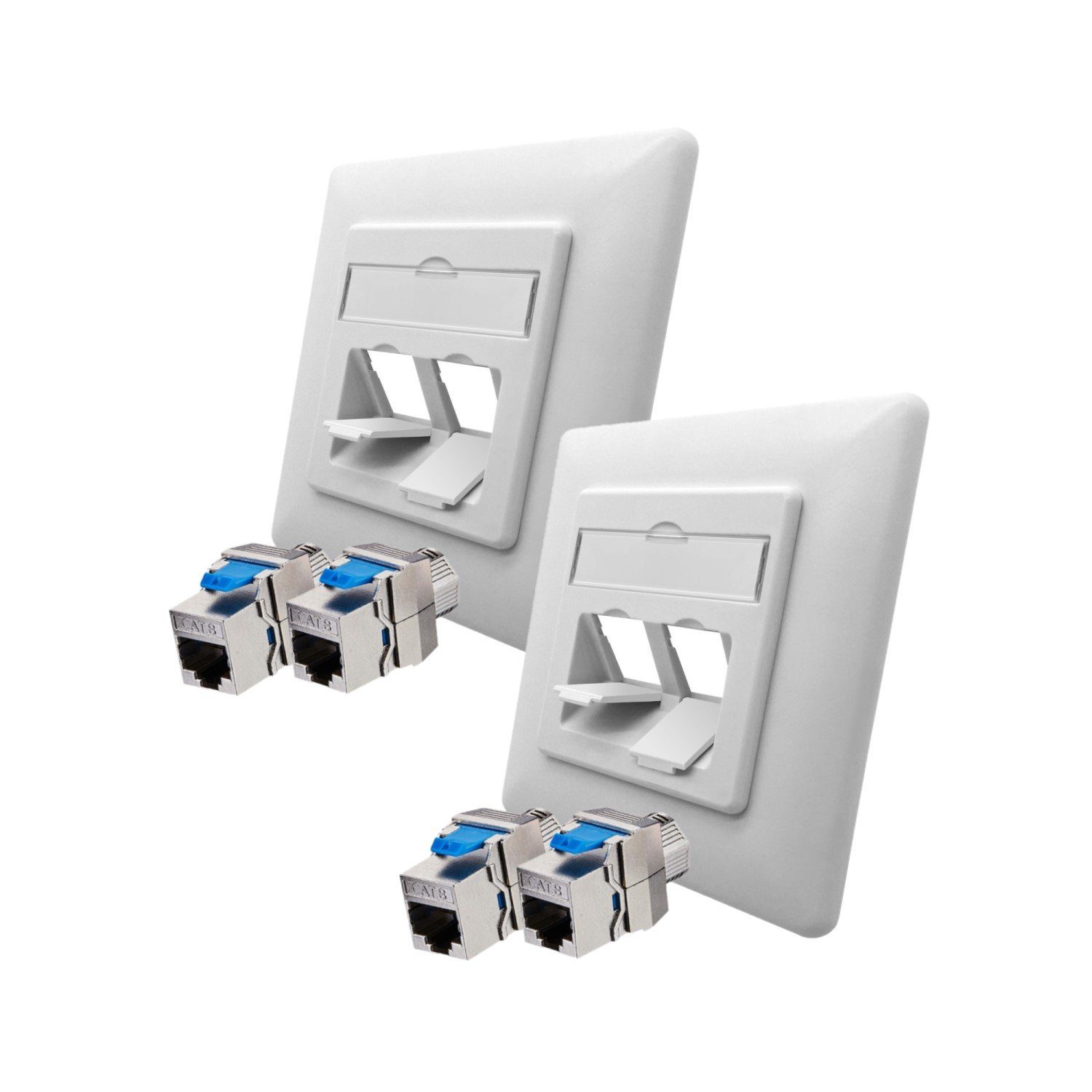 2x Universal Cat8.1 2 Port Netzwerkdose mit Sichtfenster inkl. Beschriftungseinlage