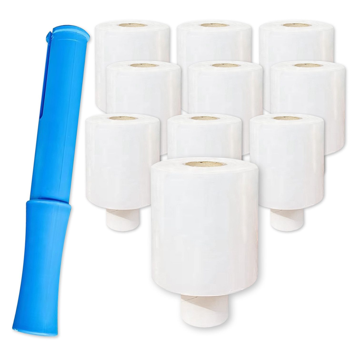 Stretchfolie Mini 100 mm x 150 m - 20 my Transparent | Handstretchfolie inkl. Handabroller | Ideal für Verpackung & Schutz | 38mm Pappkern