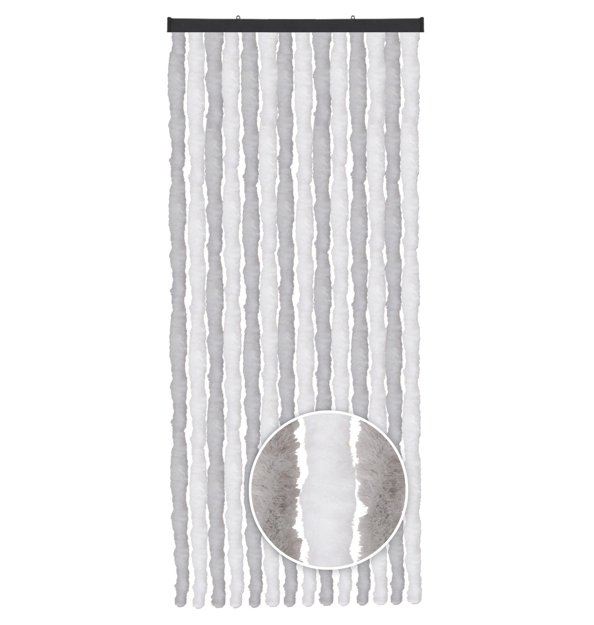 Hochwertige Materialien & durchdachte Verarbeitung Maße (Breite × Höhe): 56 × 185 cm Durchmesser pro Strang: ca. 4 cm Strangmaterial: Flauschige Chenille aus 100 % Polypropylen Montageschiene: Robuster Kunststoff (inkl. Befestigungsösen & Abdeckkappen) Kürzung: Mit Schere anpassbar; Enden können mit Feuerzeug versiegelt werden Pflege: Maschinenwaschbar bis 30 °C im Schonwaschgang oder per Handwäsche Eigenschaften: Geräuscharm, luftdurchlässig, UV- & wetterbeständig, farbecht Einsatzbereich: Für Innen- & Außenbereiche geeignet Vielseitiger Einsatz – besonders praktisch in mobilen & kompakten Räumen