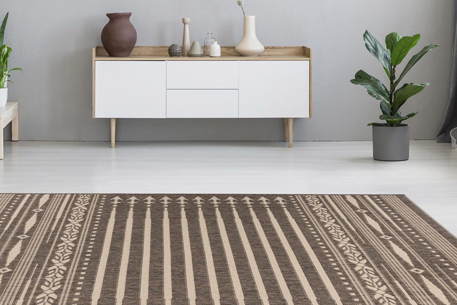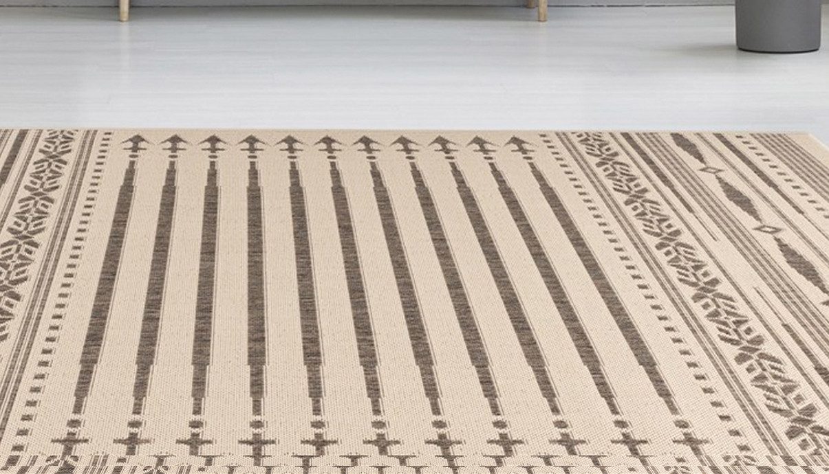 Auffälliger Outdoor-Teppich mit dezenter Farbgebung Dieser robuste Teppich für den Außenbereich setzt mediterrane Akzente in jeden Wohnbereich. Der Flachgewebeteppich mit dezenter Farbgebung schafft durch das moderne Design ein gemütliches Ambiente in jedem Außenbereich. Dank seiner feuchtigkeitsbeständigen Kunstfaser aus Polypropylen ist er wasserabweisend und wetterfest. Außenbereiche können mit ihm als Läufer oder Auslegteppich das ganze Jahr über verschönert werden. Werten Sie die Möbel auf Ihrem Balkon auf, indem Sie den Teppich darunter platzieren oder gestalten Sie ausgewählte Bereiche Ihrer Terrasse wohnlich. Kombiniert mit modernen Loungemöbeln oder Sitzelementen und Beistelltischen schafft der Teppich ein gemütliches Ambiente, welches durch Kerzen und Lichterketten ergänzt werden kann. Ob auf Balkon, Terrasse oder Hof, der Outdoor Teppich ist überall gern gesehen und kann selbstverständlich ebenso im Wohnraum ausgelegt werden. Lassen Sie die Sommerabende mit diesem Teppich in Ihrem Außenbereich ausklingen!