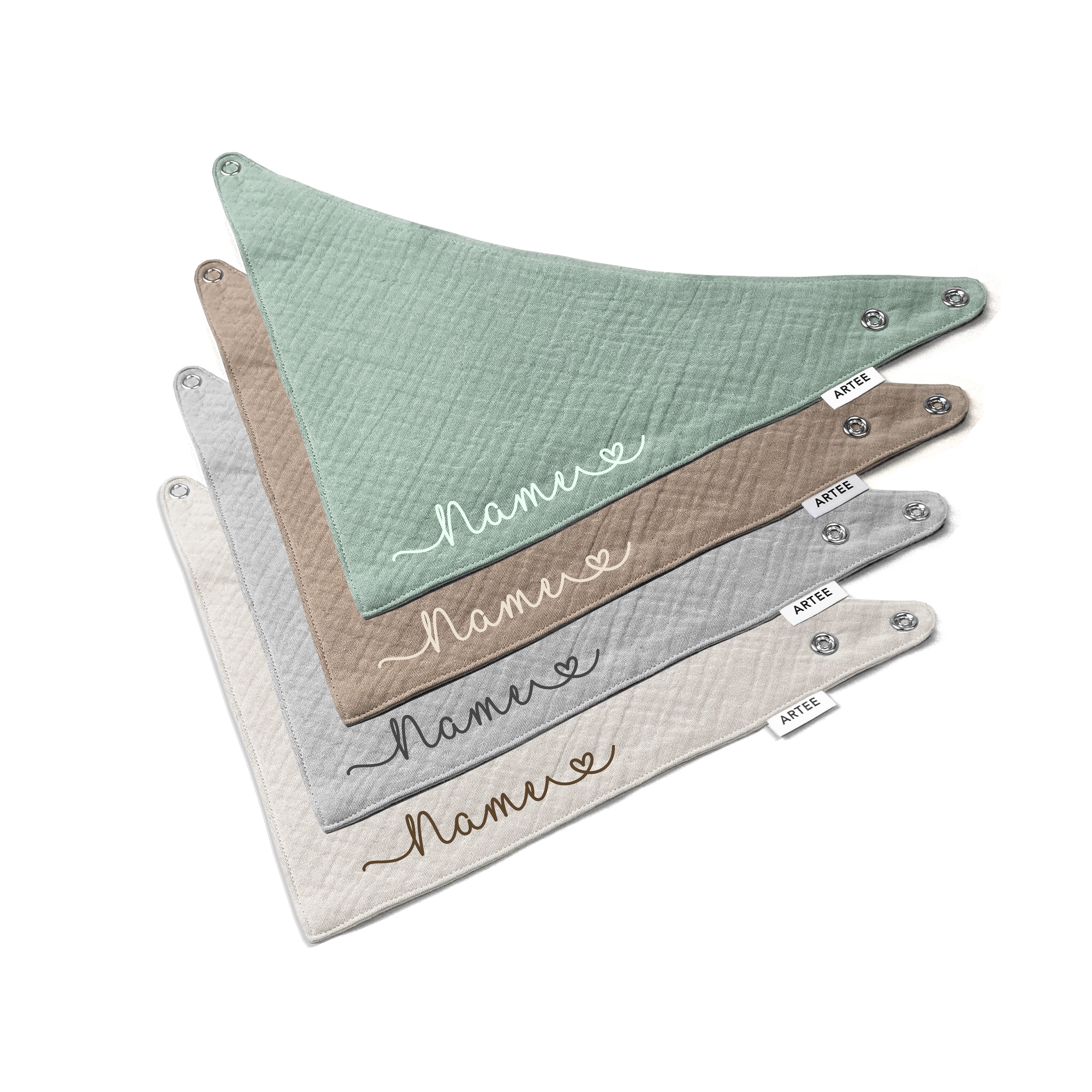 ANLEITUNG: Senden Sie im Anschluss an die Bestellung eine E-Mail mit der Angabe der Bestellnummer und des gewünschten Namens an personalisierung@arteestore.com Wichtig: Personalisierte Artikel sind vom Umtausch ausgeschlossen! Set aus 4 personalisierten Musselin Halstüchern in Размер S (0-18 Monate) oder Размер M (8-48 Monate) für Babys & Kleinkinder. Die Halstücher sind ideal für die Zahnungsphase, da der Baumwollmusselin viel Feuchtigkeit aufnimmt. Sie halten an kühleren Tagen den Hals angenehm warm und schützen die Kleidung vor Flecken. Tags: Geschenk zur Geburt, Geburtstag, Taufe, Musselin, Baumwolle, Gaze, Zahnen, Sabberlätzchen, Mullwindeln, verstellbar, Dreieckstuch, Halstuch, Musselintuch, Lätzchen