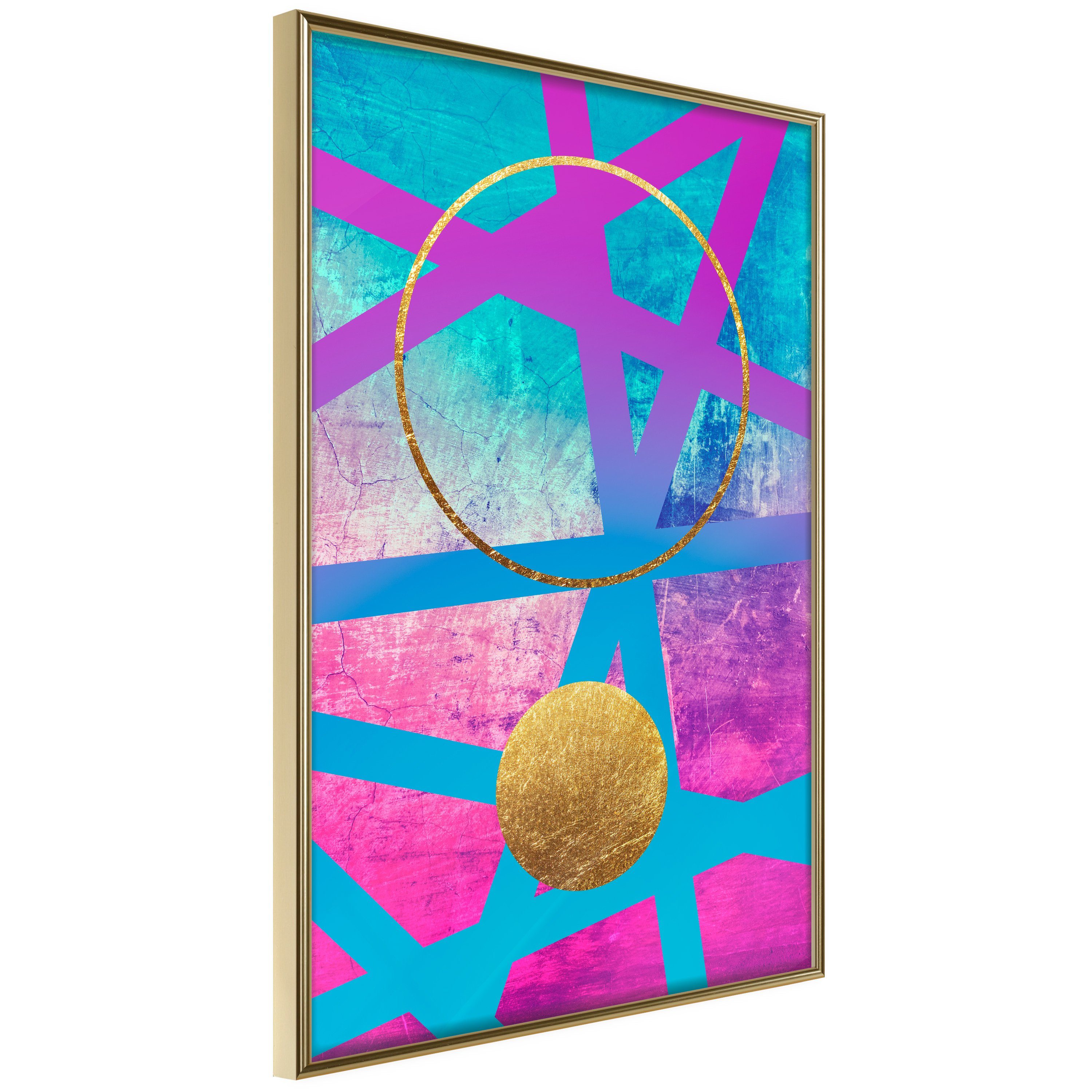 Das Poster ist in einen minimalistischen, leichten Rahmen eingerahmt und auf dem Hintergrund der Wand exponiert. Das Poster ist mit Acrylglas gesichert, ein Aufhänger ist an der Rückseite des Rahmens angebracht.