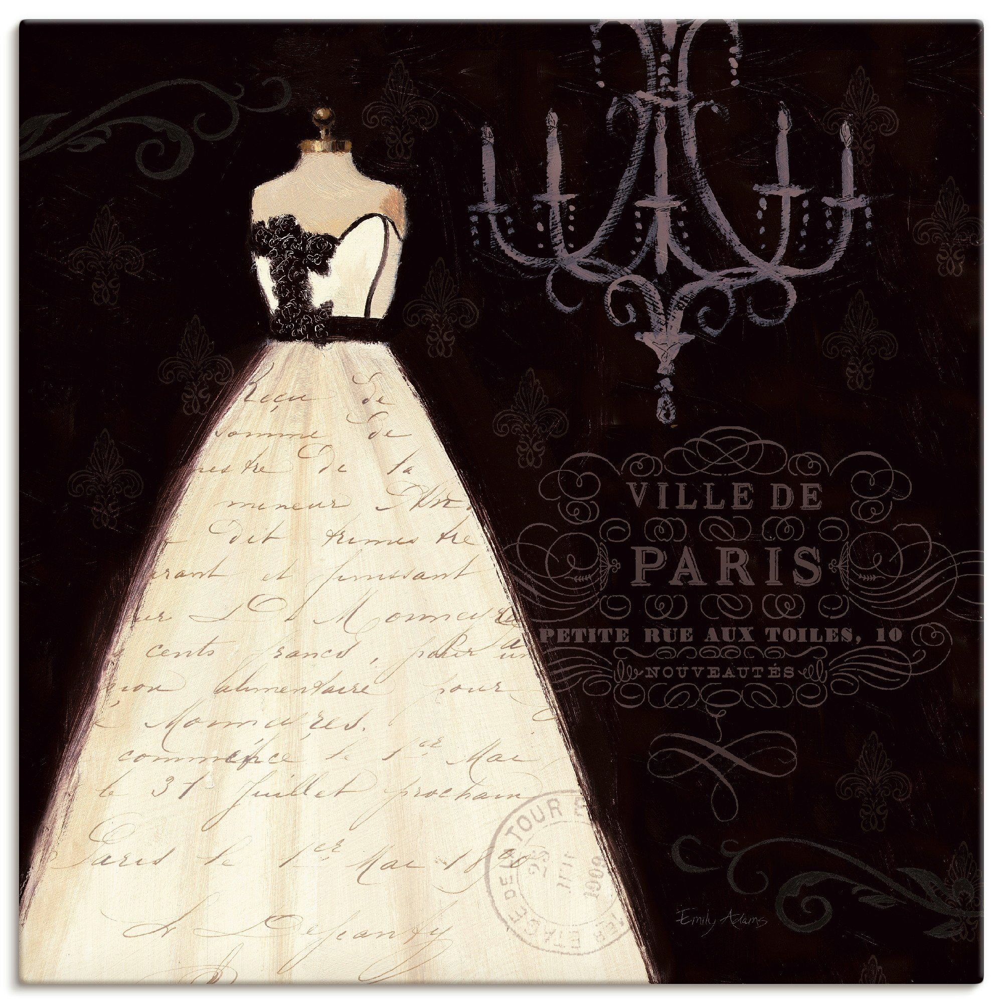 Unser mit Liebe in Handarbeit hergestelltes Leinwandbild mit dem Motiv "Französisches Modelabel I" von Emily Adams überzeugt durch originalgetreue Druckqualität und hochwertige Basismaterialien. Das Motiv wird Dir wie abgebildet und fertig zum Aufhängen nach Hause geliefert.