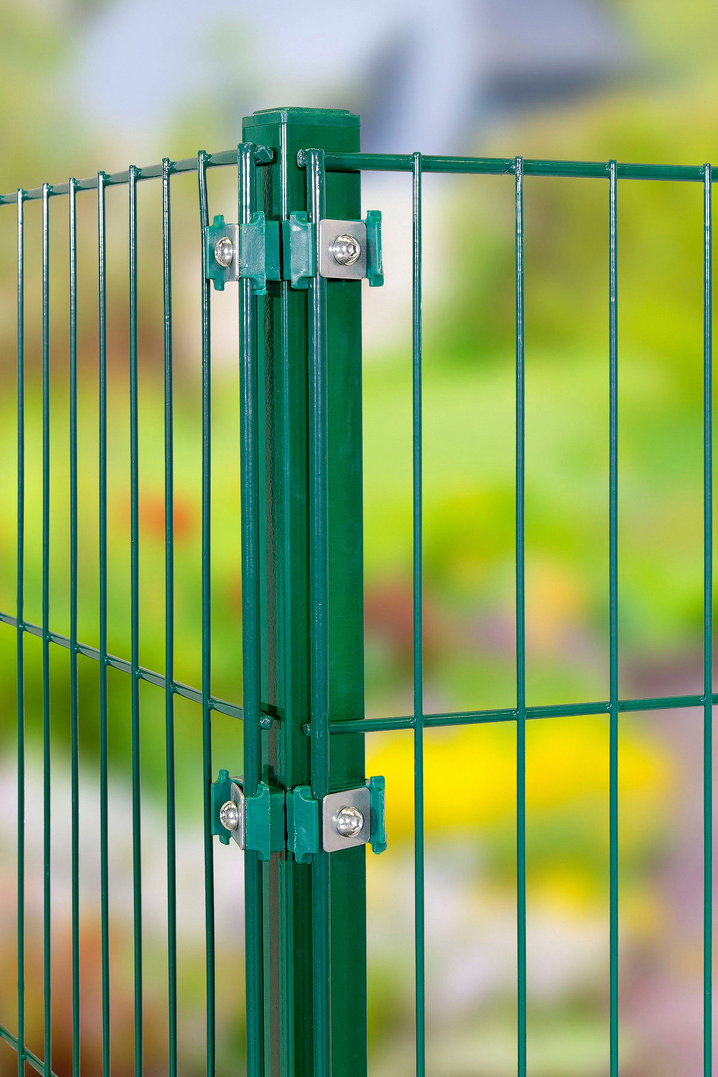 Der Eckpfosten aus verzinktem Metall ist durch Phosphatierung und Pulverbeschichtung optimal gegen Rost geschützt. Er eignet sich für einen klassischen Gartenzaun aus Einzel- oder Doppelstabmatten und wird inklusive Halterungen und Befestigungsmaterial geliefert.