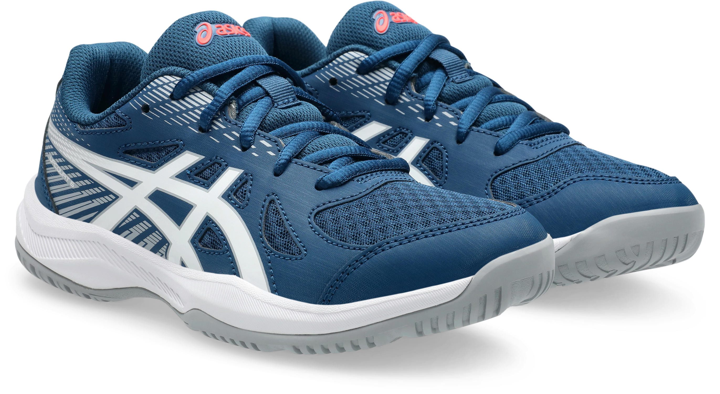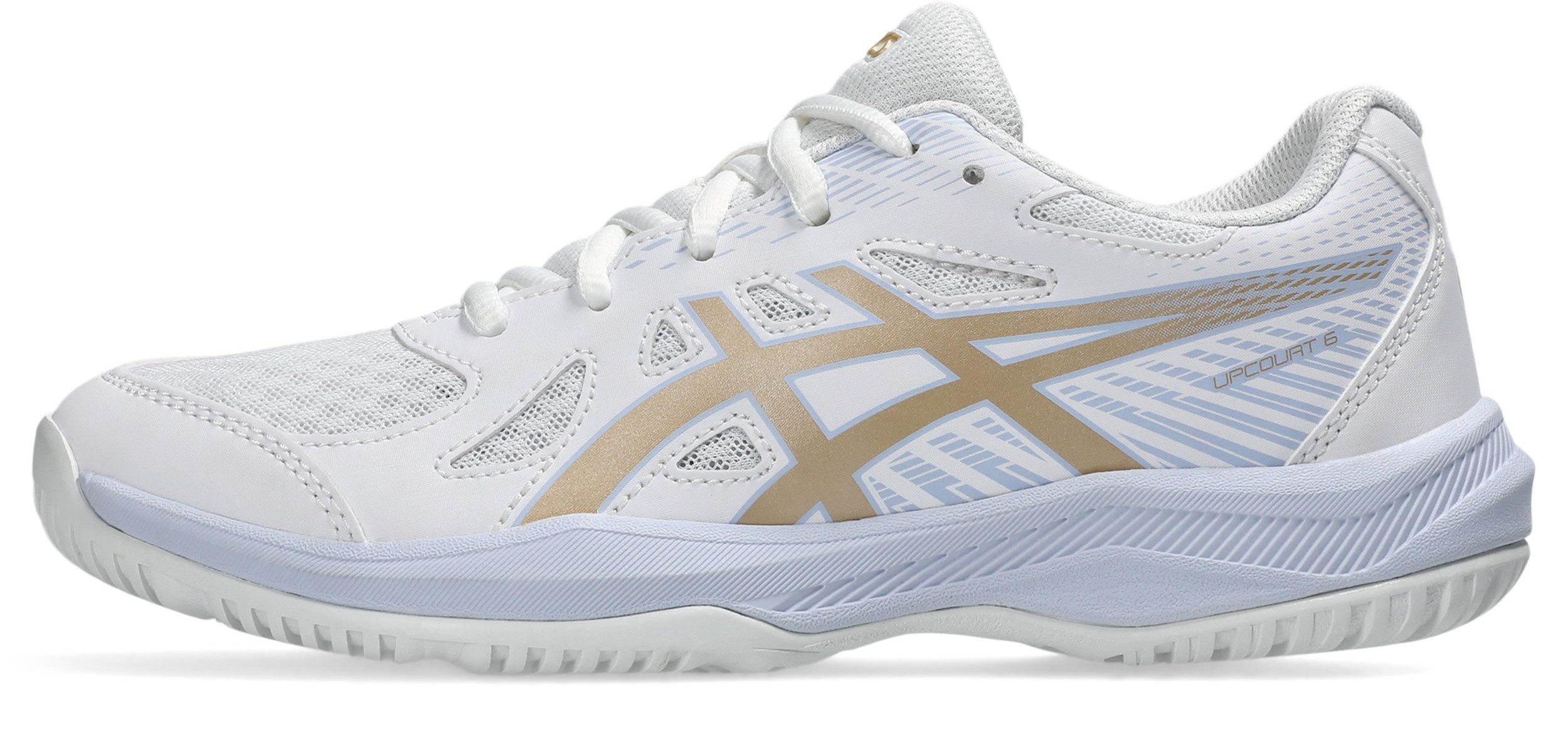 Mit den Hallenschuhen »UPCOURT 6 GS« der Marke Asics kann der Matchday kommen. Das Schuhwerk ist dank des niedrigen Schafts leicht sowie flexibel. Mit der Schnürung kann der Schuh einfach und individuell angepasst werden. Er gibt dem Fuß bei Badmintonspielen, beim Handballspielen, beim Squashspielen, beim Volleyballspielen einen guten Halt.