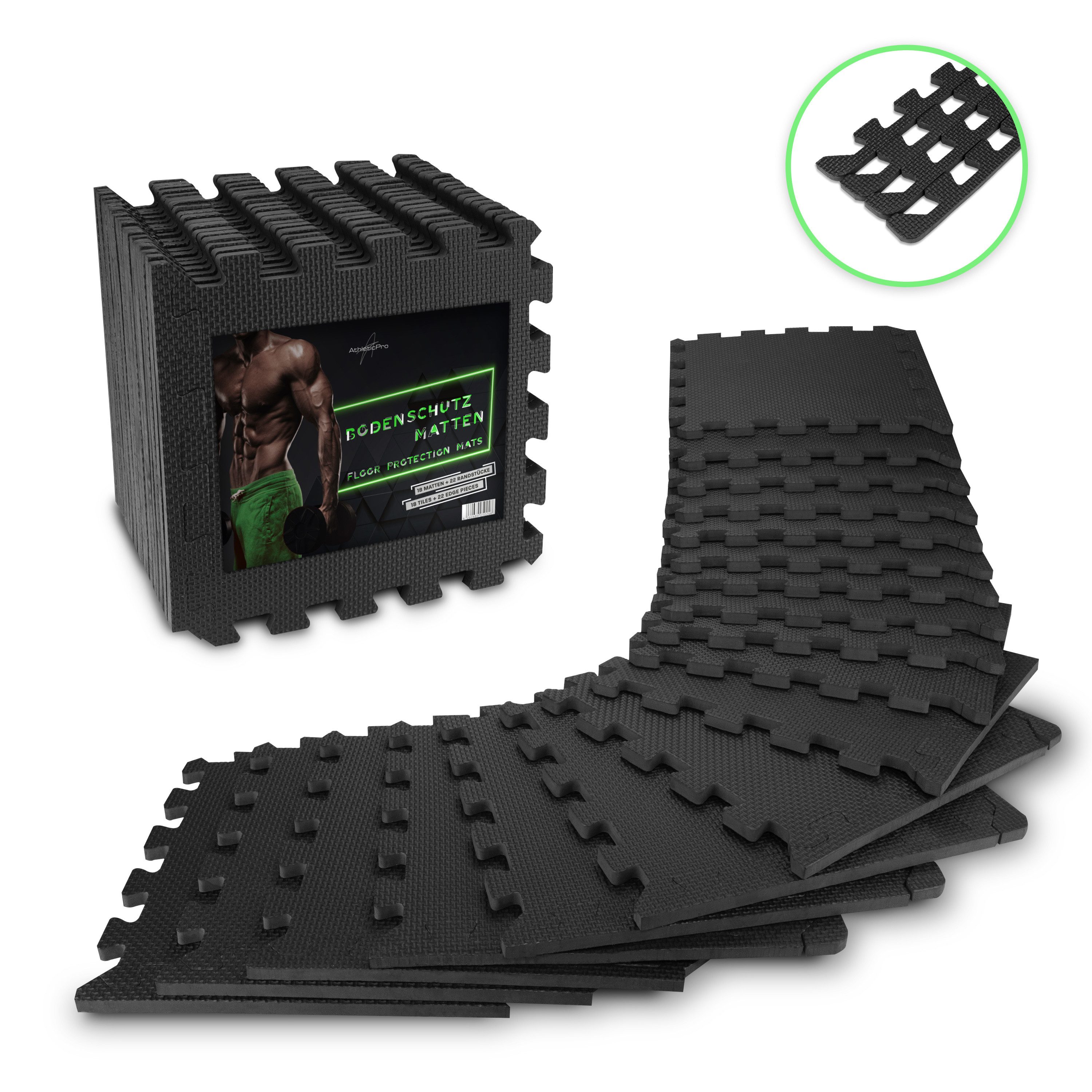 Die modularen 30x30cm-Schutzmatten lassen sich nach Belieben zusammenstecken und mit den 22 mitgelieferten Endstücken flexibel anpassen. Ob Fitnessgeräte, Heimstudios oder Spielbereiche – diese Matten bieten idealen Bodenschutz in kompakter Form.