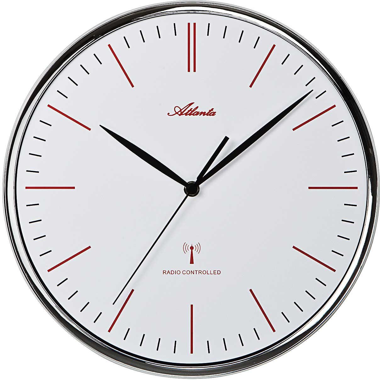 Die Atlanta 4494 ist eine stilvolle Wanduhr mit zeitlosem, funktionalem Design und moderner Funktechnologie. Das silberfarbene Metallgehäuse mit glänzender Chrom-Optik verleiht der Uhr einen hochwertigen, modernen Look. Das weiße Zifferblatt mit rotem Strichindex wirkt puristisch und sorgt für eine klare, schnelle Zeiterfassung – ideal für Küche, Büro oder Wohnbereich.