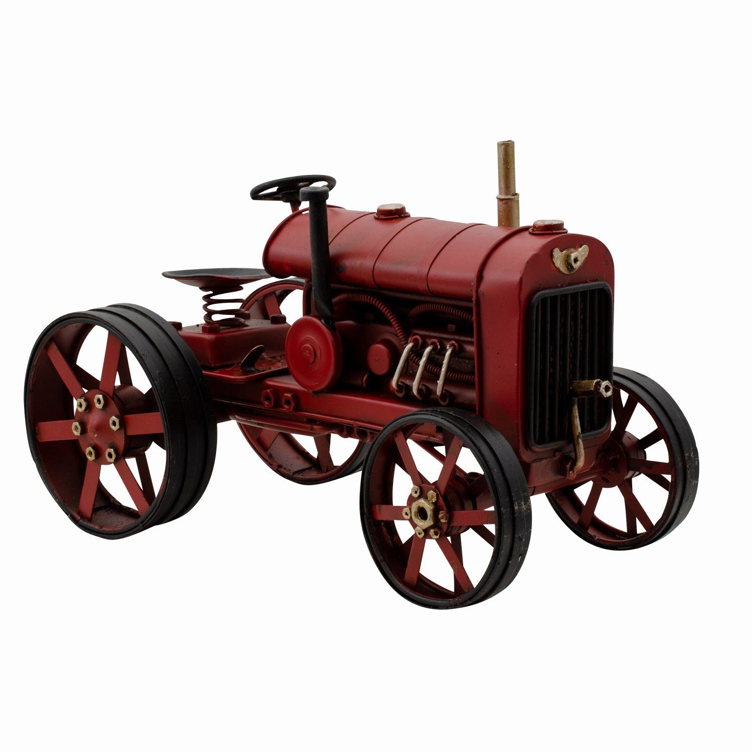 Wunderschöner Modelltraktor nach altem Vorbild hergestellt. Wie auf den Fotos zu sehen, eine dekorative Arbeit im antiken Stil. Durch traditionelle Bearbeitung entsteht ein antikes Erscheinungsbild. Die Maße lauten wie folgt: 26 x 17 x 15cm (B x H x T). Die Dekoration dient nur zum Größenvergleich und ist nicht Bestandteil des Angebotes. Das Modellfahrzeug ist nur zu Dekozwecken geeignet und somit kein Kinderspielzeug. Dieses Produkt ist nur für Sammler gedacht, die mindestens 14 Jahre alt sind.
