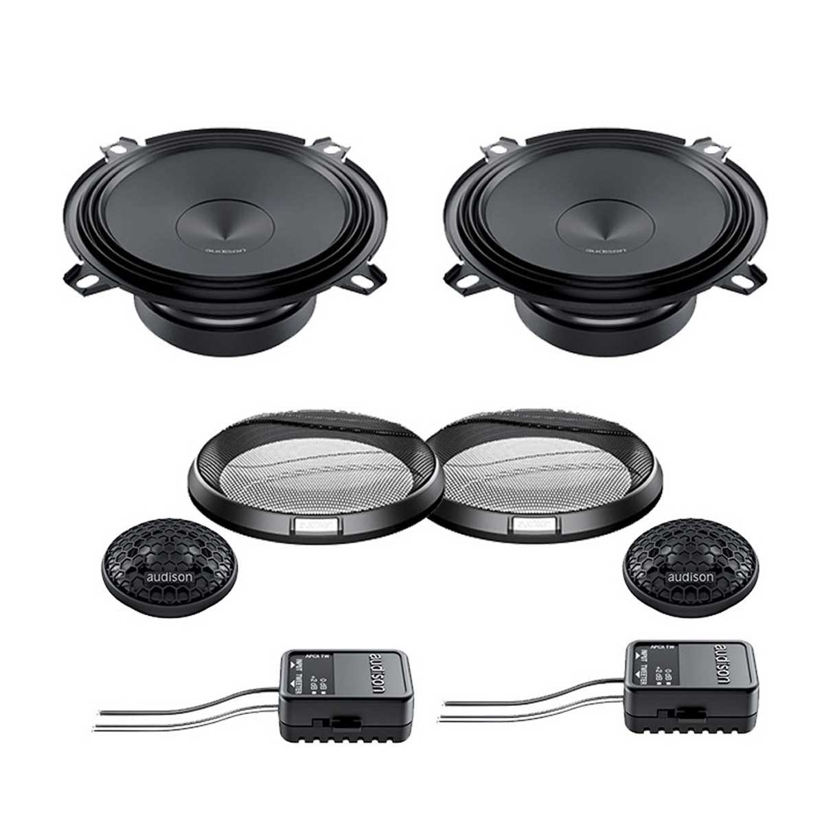 Zwei-Wege-System mit AP 1 Hochtöner und AP 5 Tieftöner. Die Frequenzweiche APCX TW verfügt über einen zweistufigen Pegelwähler, mit dem das Ansprechverhalten an die beiden Hauptanwendungen angepasst werden kann: +2dB für die Installation hinter dem OEM-Gitter, 0dB für die A-Säulen-Installation ohne zusätzliches Gitter zwischen Hochtöner und Hörer Um die Installation in OEM-Positionen zu erleichtern, sind die Tieftöner mit Hochstrom-Schnellanschlussklemmen mit doppeltem Kontakt an Plus- und Minuspolen für hohe Flexibilität und schnellen Anschluss ausgestattet.