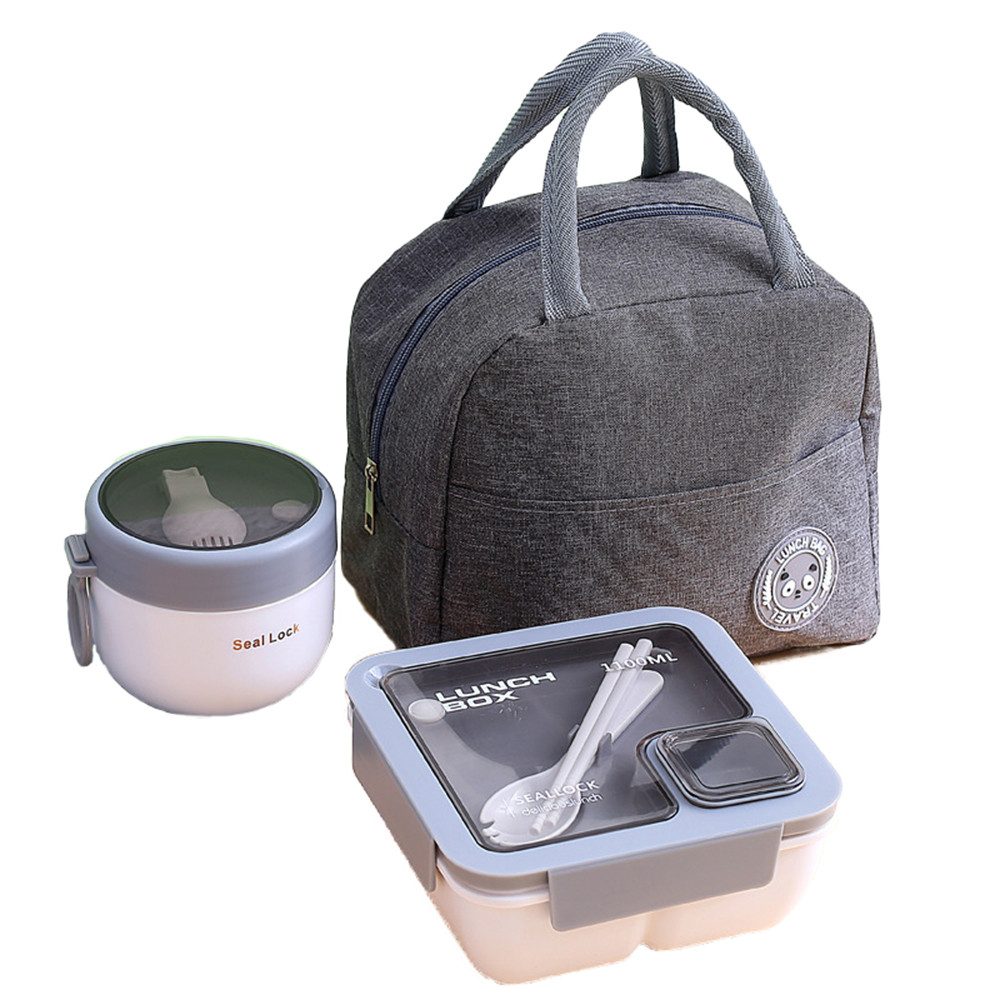Lieferumfang | Isolierbeutel, Besteck, Suppentasse, Lunchbox mit Fächern |