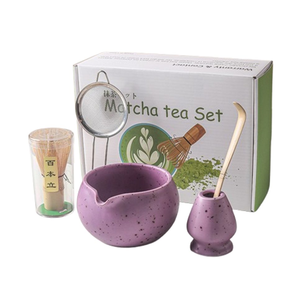 Enthält: Matcha-Schale, Chasen-Halter, Chasen (Bambusbesen), Chashaku (Teelöffel) und Edelstahl-Sieb.