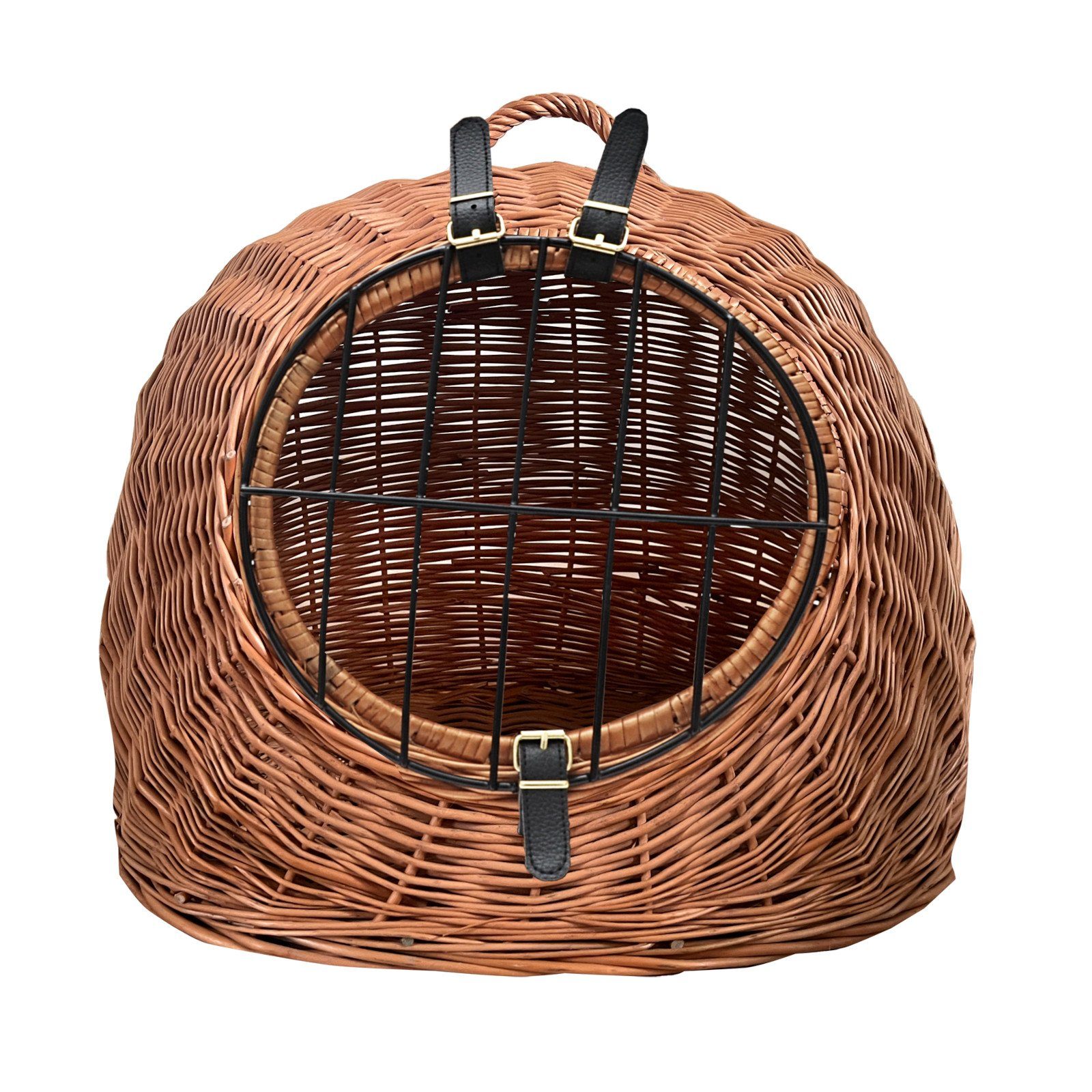 geflochten – somit ist jeder Korb ein Unikat! Dank der komplett abnehmbaren Gittertür und Riemen wird aus