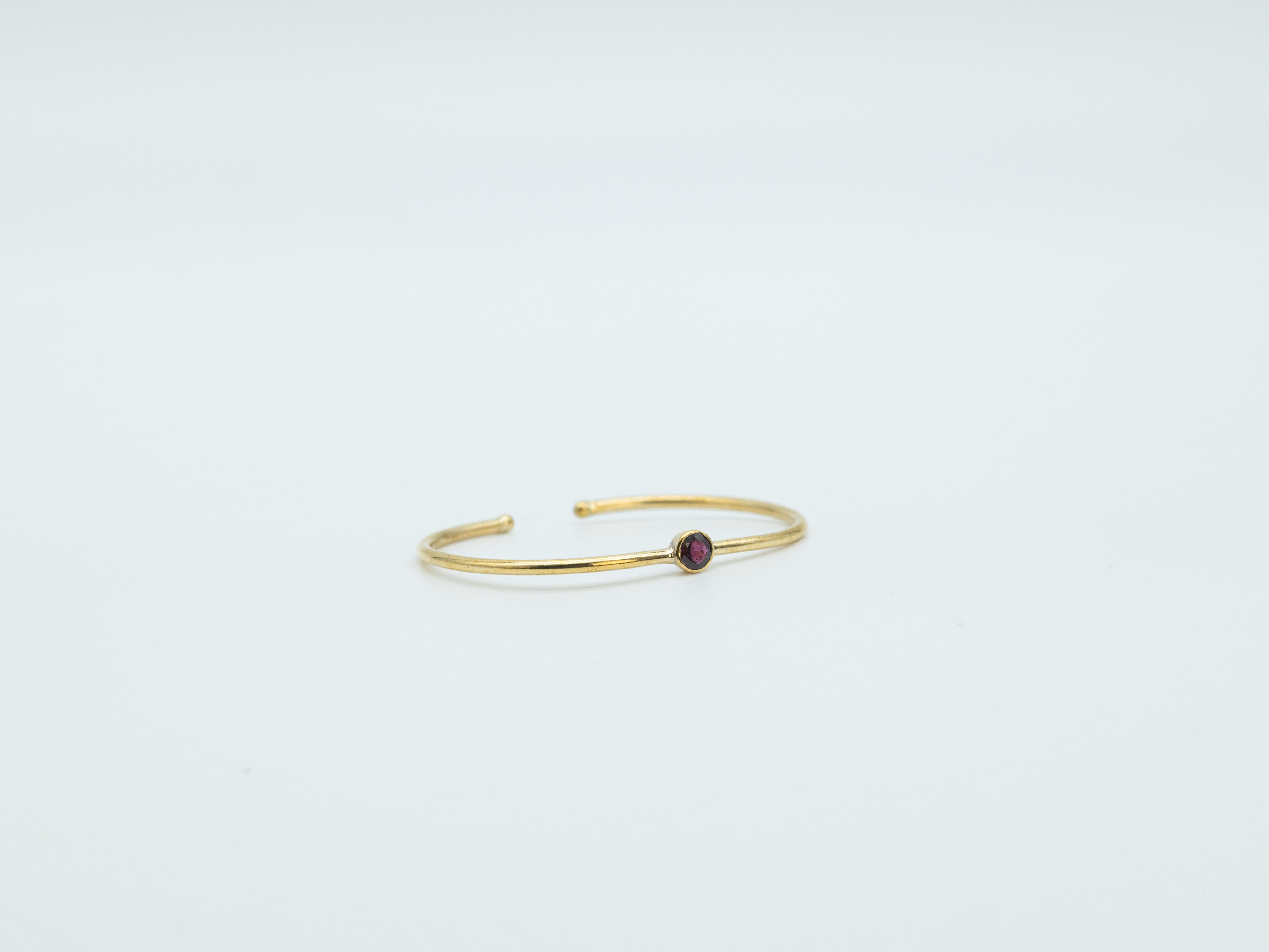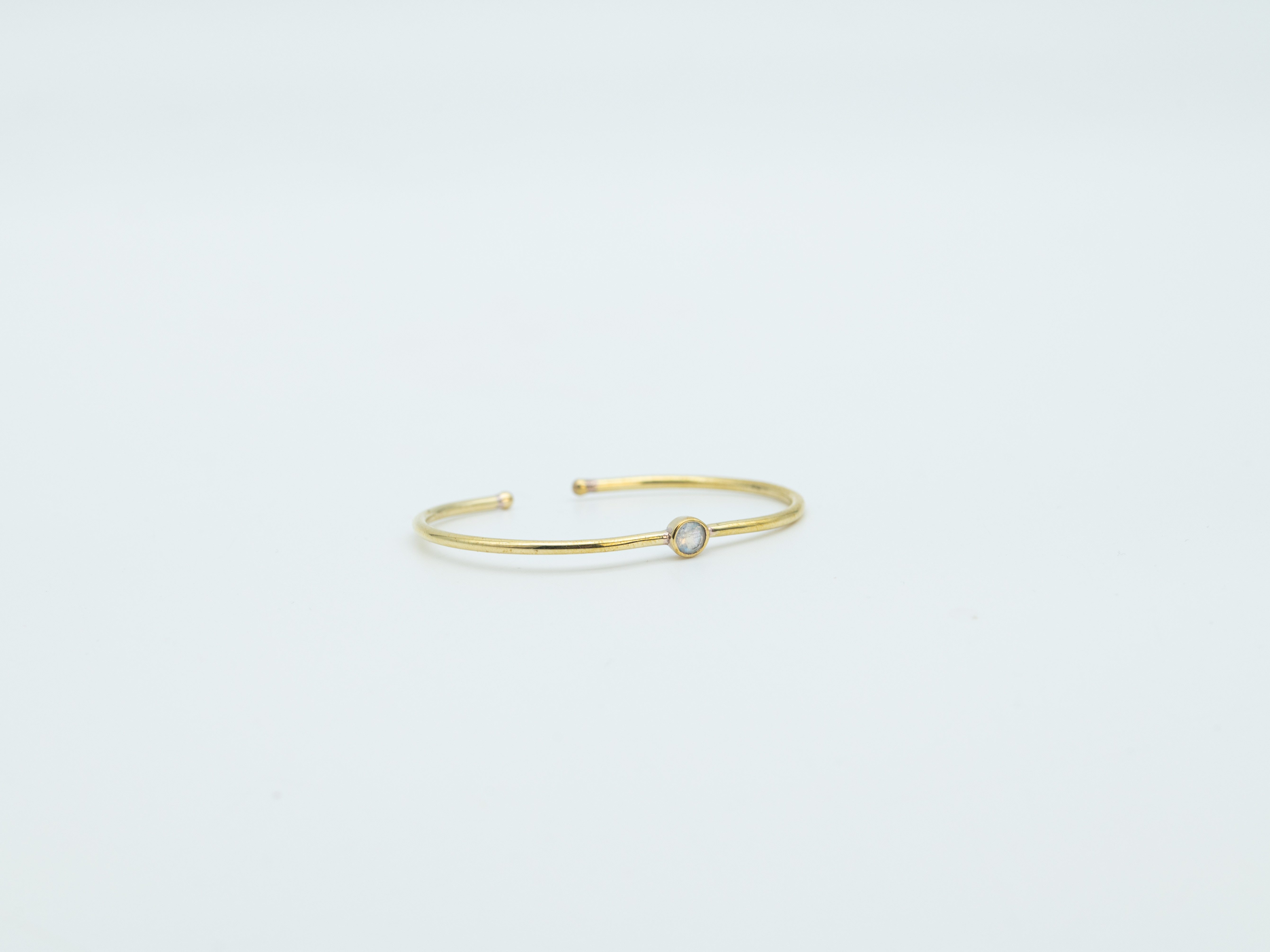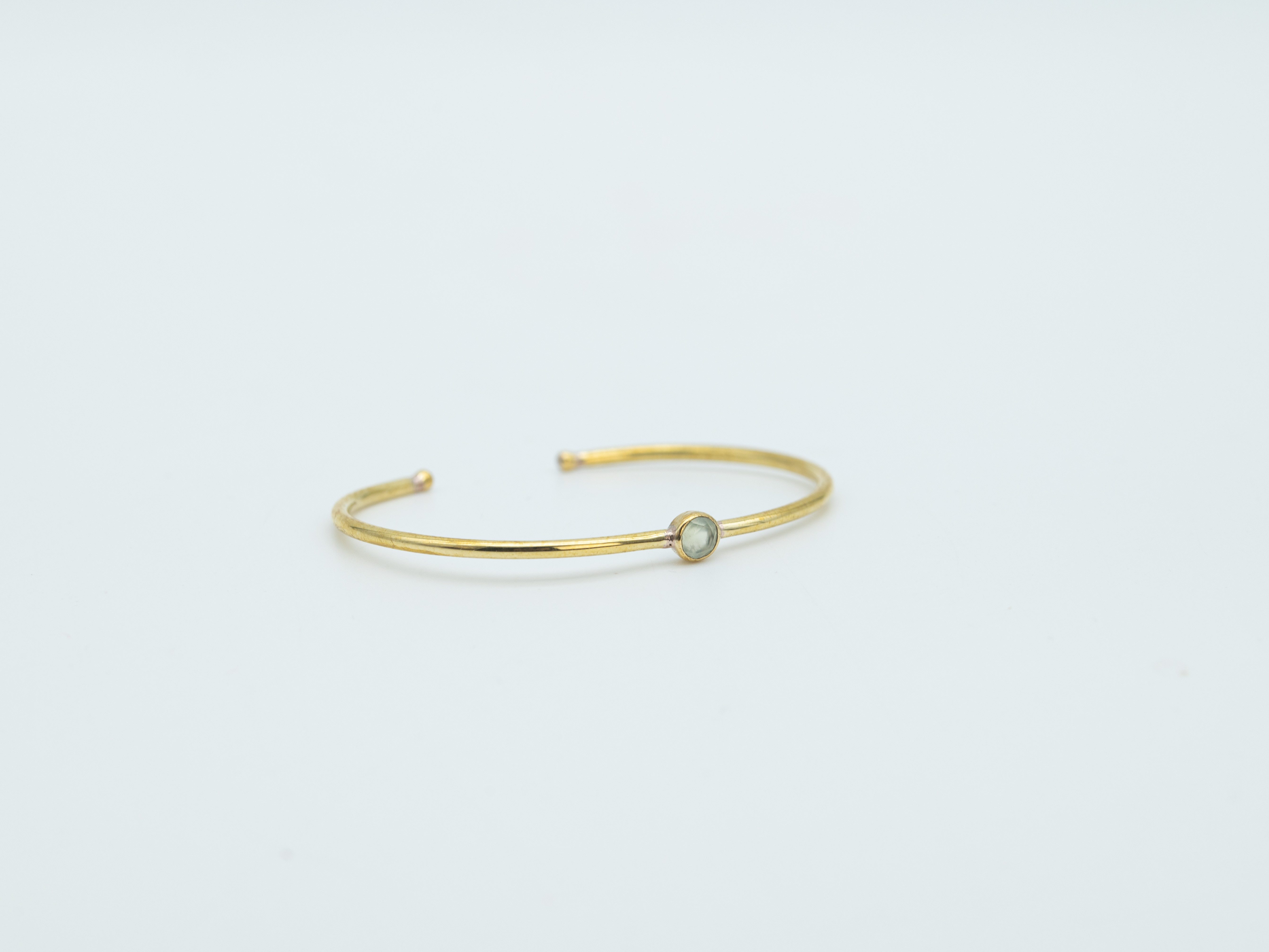 Offener Armreif aus vergoldetem Messing mit Naturstein – wähle zwischen Granat, Mondstein oder Aquamarin. Dieser elegante, minimalistische Armreif wird in liebevoller Handarbeit gefertigt und ist perfekt, um ihn einzeln oder im angesagten Stacking-Look zu tragen. Das schlanke Design und der funkelnde Stein machen ihn zum idealen Geschenk für Mama, die beste Freundin oder einfach für dich selbst. Erhältlich in drei edlen Вариантыn, ist dieses Schmuckstück vielseitig kombinierbar und passt zu jedem Stil. Ideal für alle, die handgefertigten, minimalistischen Goldschmuck mit Natursteinen suchen.