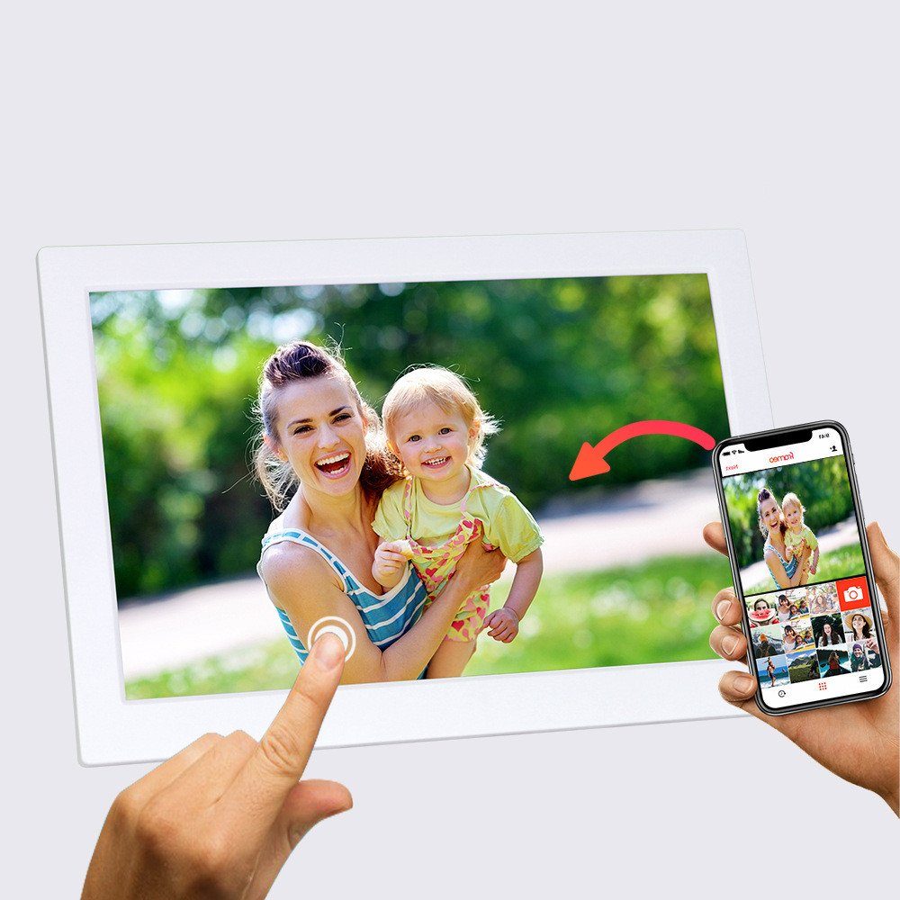 3. Automatische Drehung und mehrere Funktionen - Es kann horizontal/vertikal platziert werden. Das Bild dreht sich automatisch, wenn Sie den Rahmen drehen. Dank 16 GB internem Speicher können Sie zahlreiche Fotos und Videos speichern.
