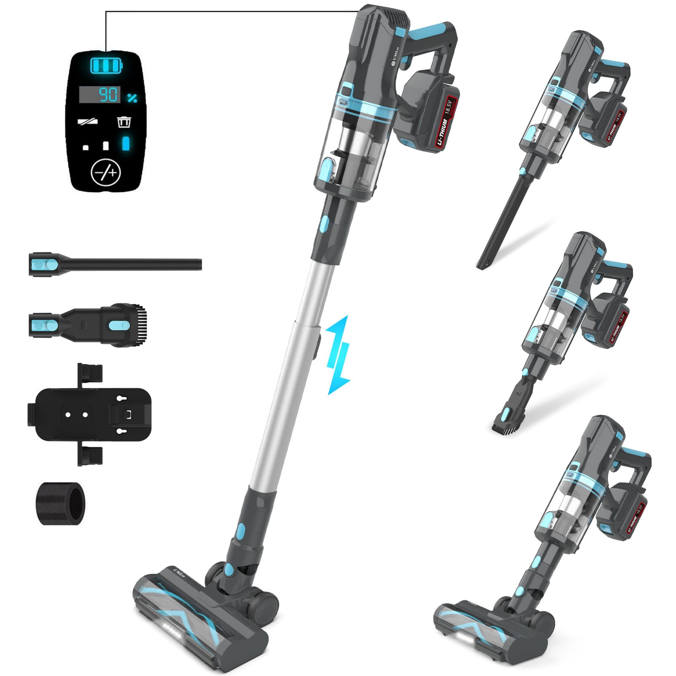 Der UMLo V11 ist ein moderner kabelloser Stiel- und Handstaubsauger, der mit starker Leistung und hoher Flexibilität überzeugt. Ausgestattet mit einem 300W bürstenlosen Motor erreicht er eine Saugkraft von bis zu 30 kPa und entfernt zuverlässig Staub, Krümel und Tierhaare von Teppichen, Hartböden und schwer zugänglichen Stellen.