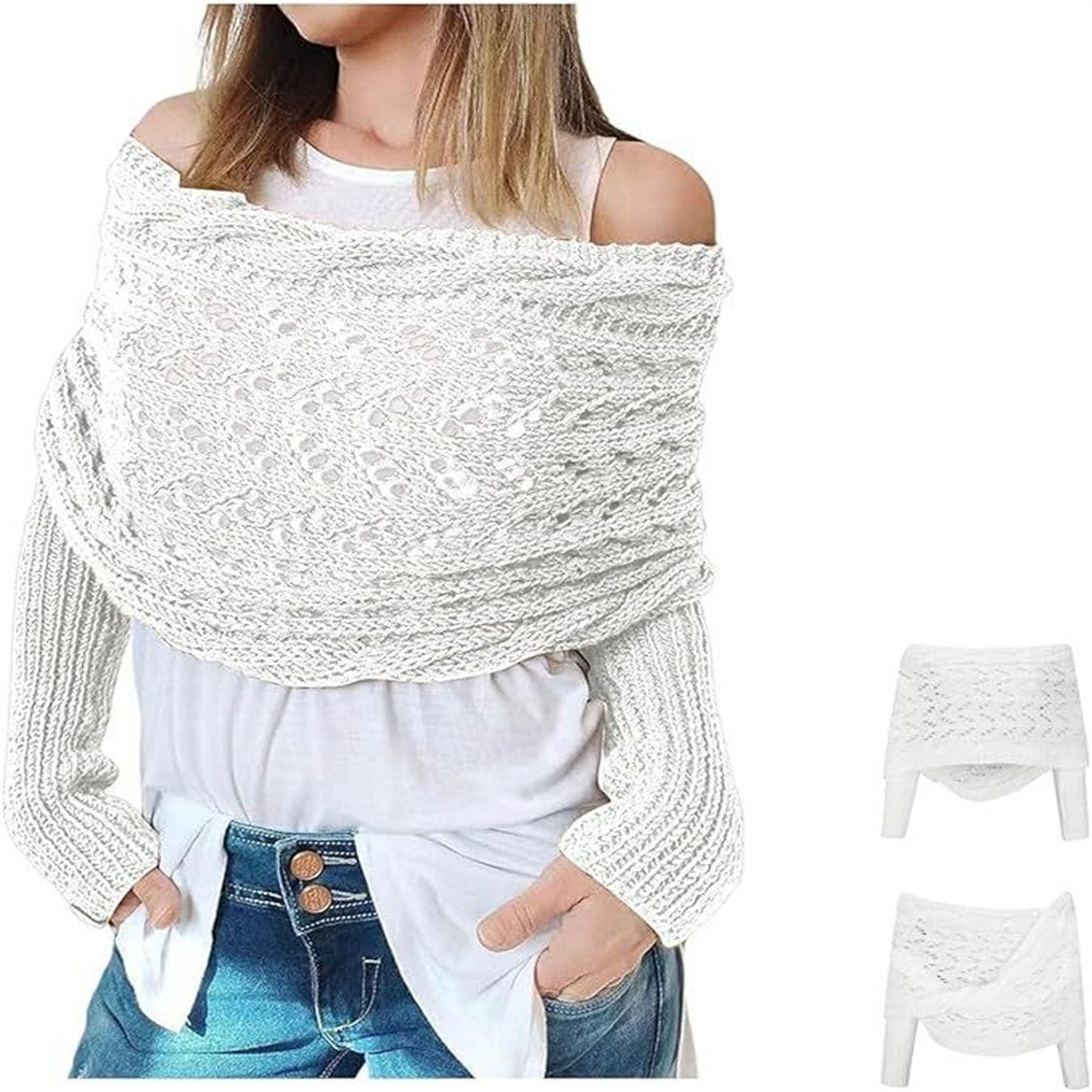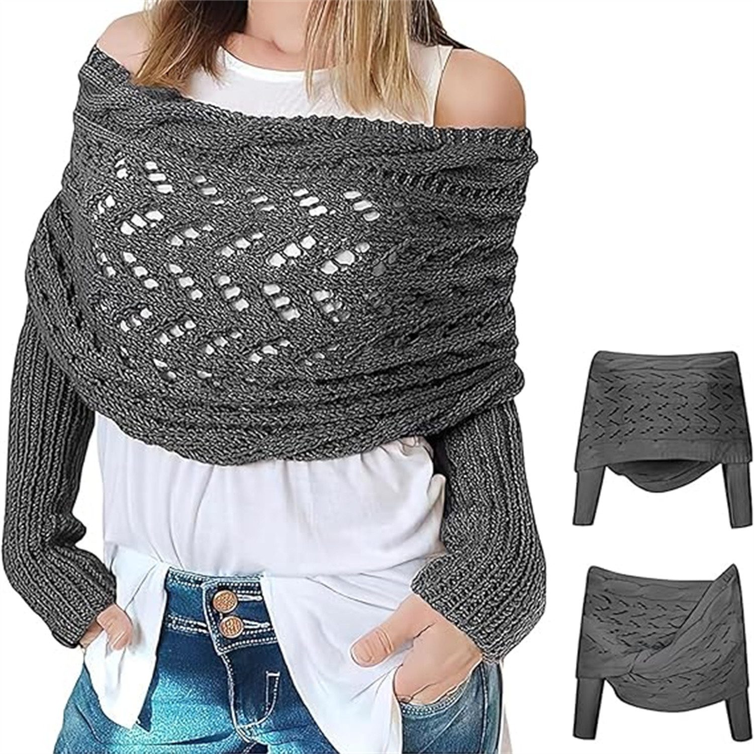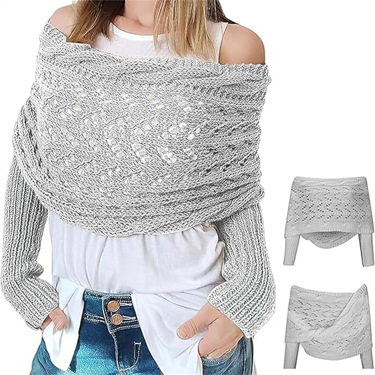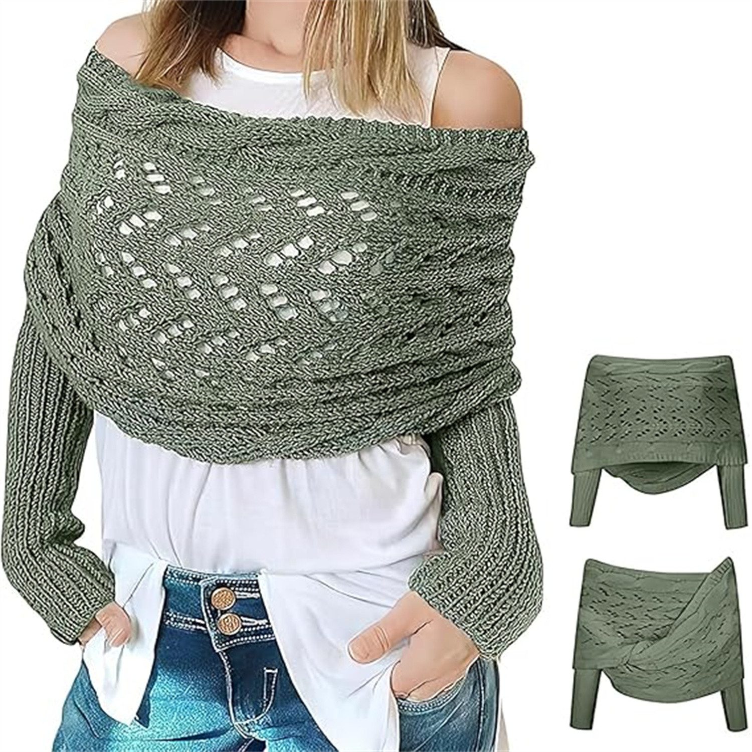 Gestrickter Kabel-Wickel-Pullover-Schal mit Ärmeln für Frauen - Multifunktionaler Schal mit Ärmeln, gestrickter Schal mit Ärmeln für Frauen, gemütlicher Ärmel-Wickel-Schal