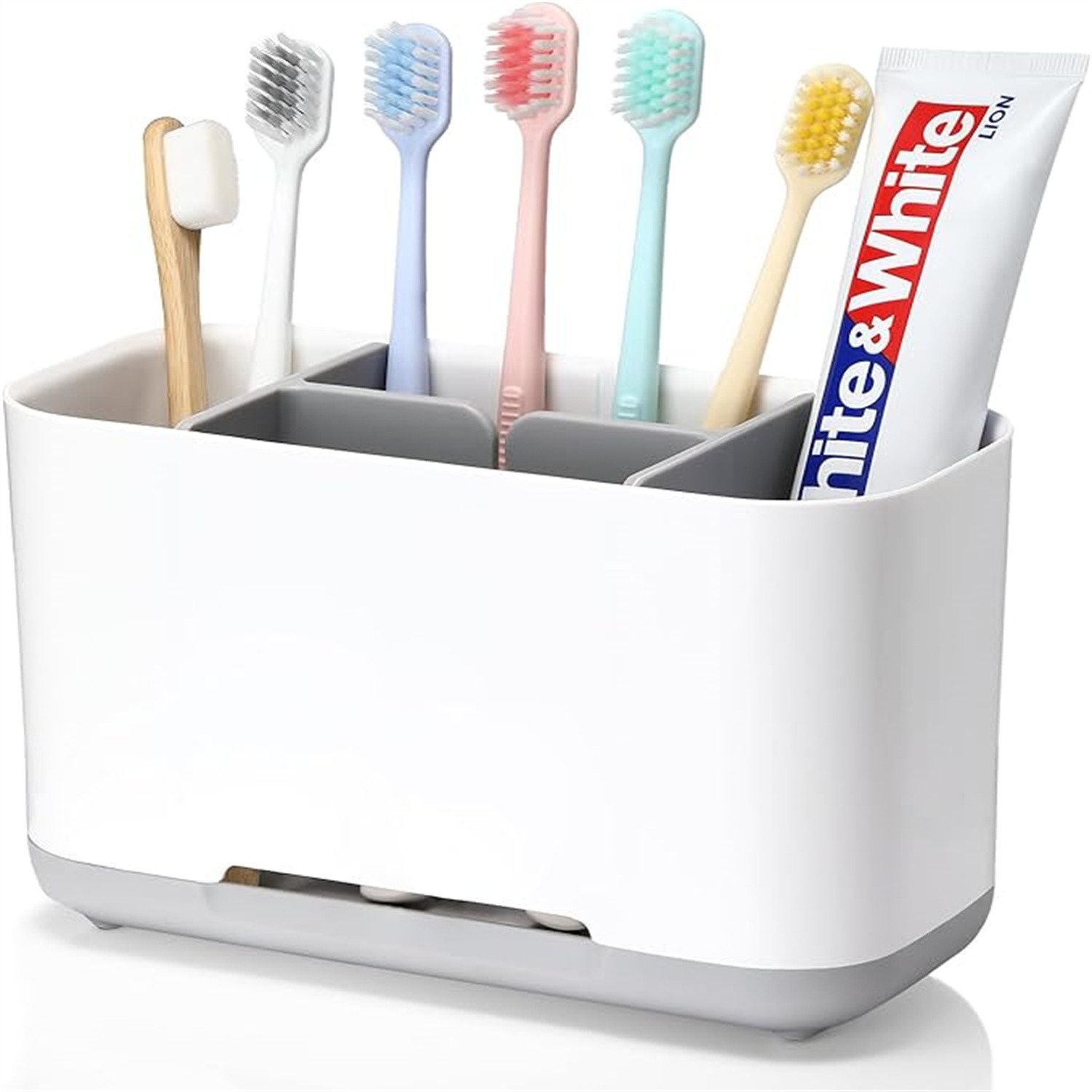 mit abnehmbarem Design für eine einfache Reinigung. Der Zahnbürstenhalter verfügt über eine Abflussöffnung an der Unterseite, und der Boden kann zur Reinigung separat abgenommen werden.
