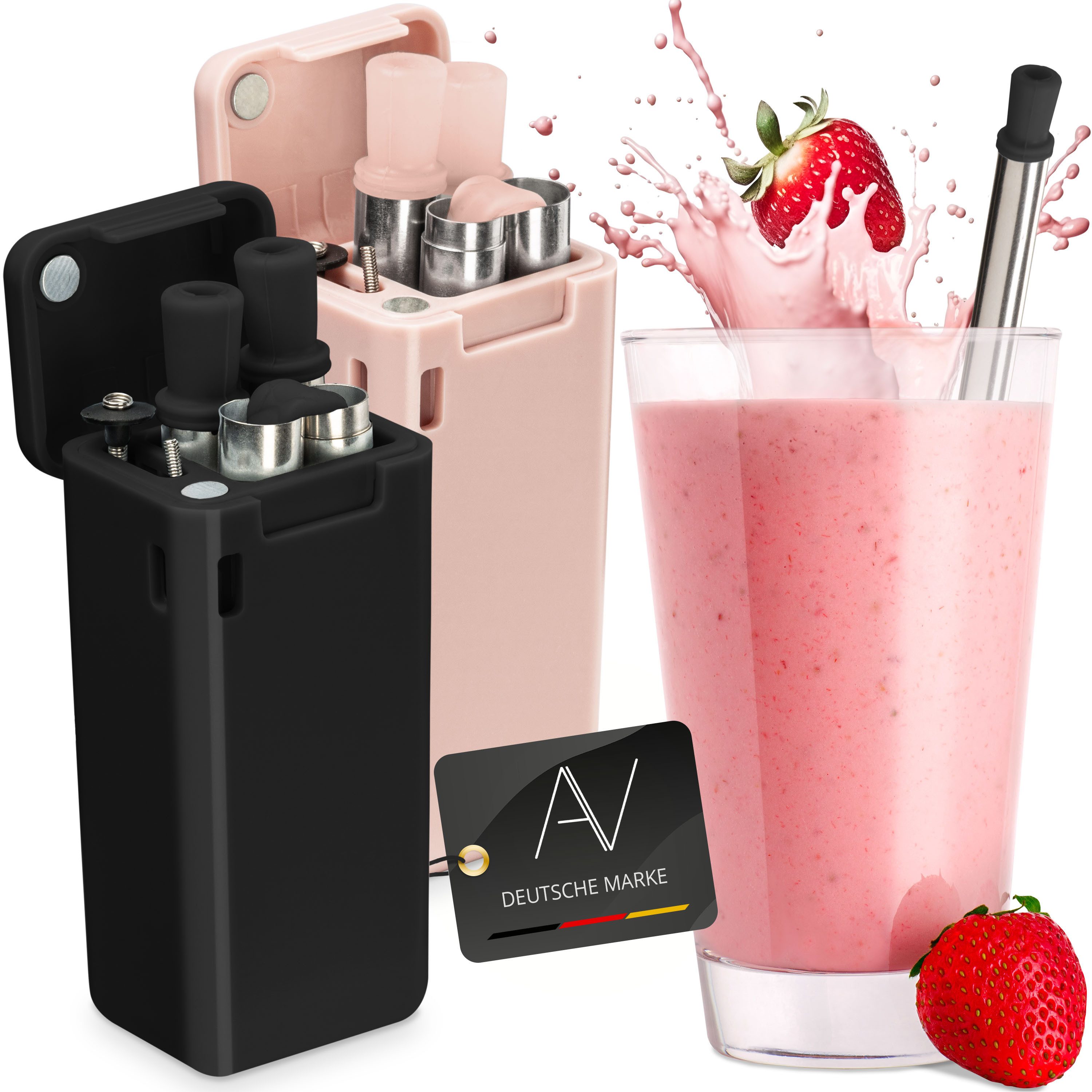 Lieferumfang: 1x 2er-Set Wiederverwendbare Edelstahl Strohhalme von AVANA Farbe: Schwarz & Rosa
