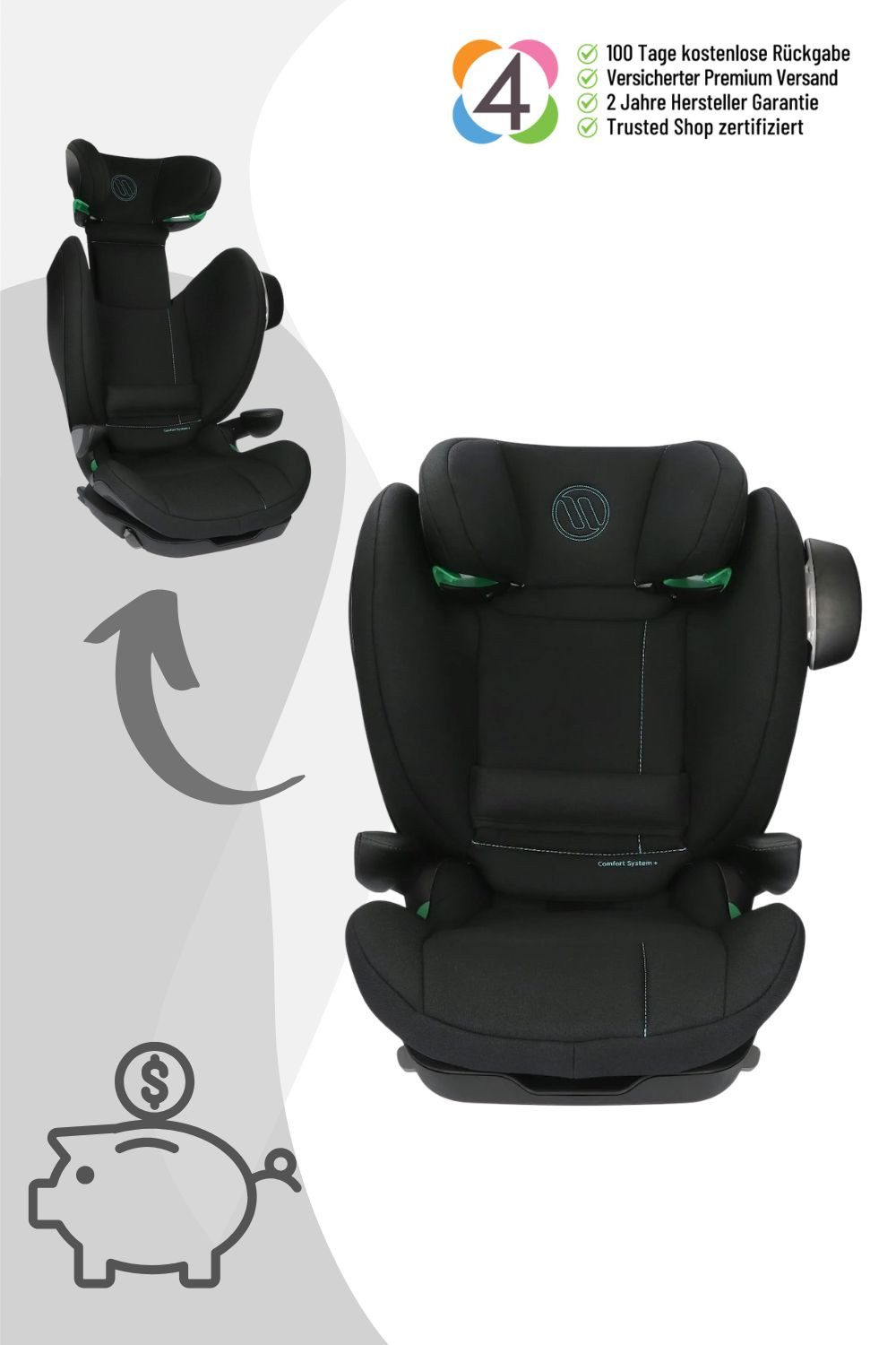 Eure Sicherheit und der Komfort Eurer Kinder stehen für uns an erster Stelle. Mit dem Avionaut MaxSpace Smart Kindersitz bieten wir Euch eine innovative Lösung für die Altersgruppe von 3,5 bis 12 Jahren (15-50 kg / maximal 150 cm). Dieser Kindersitz kombiniert modernste Technologie mit durchdachtem Design, um das Reisen für Eure Kleinen so angenehm wie möglich zu gestalten.