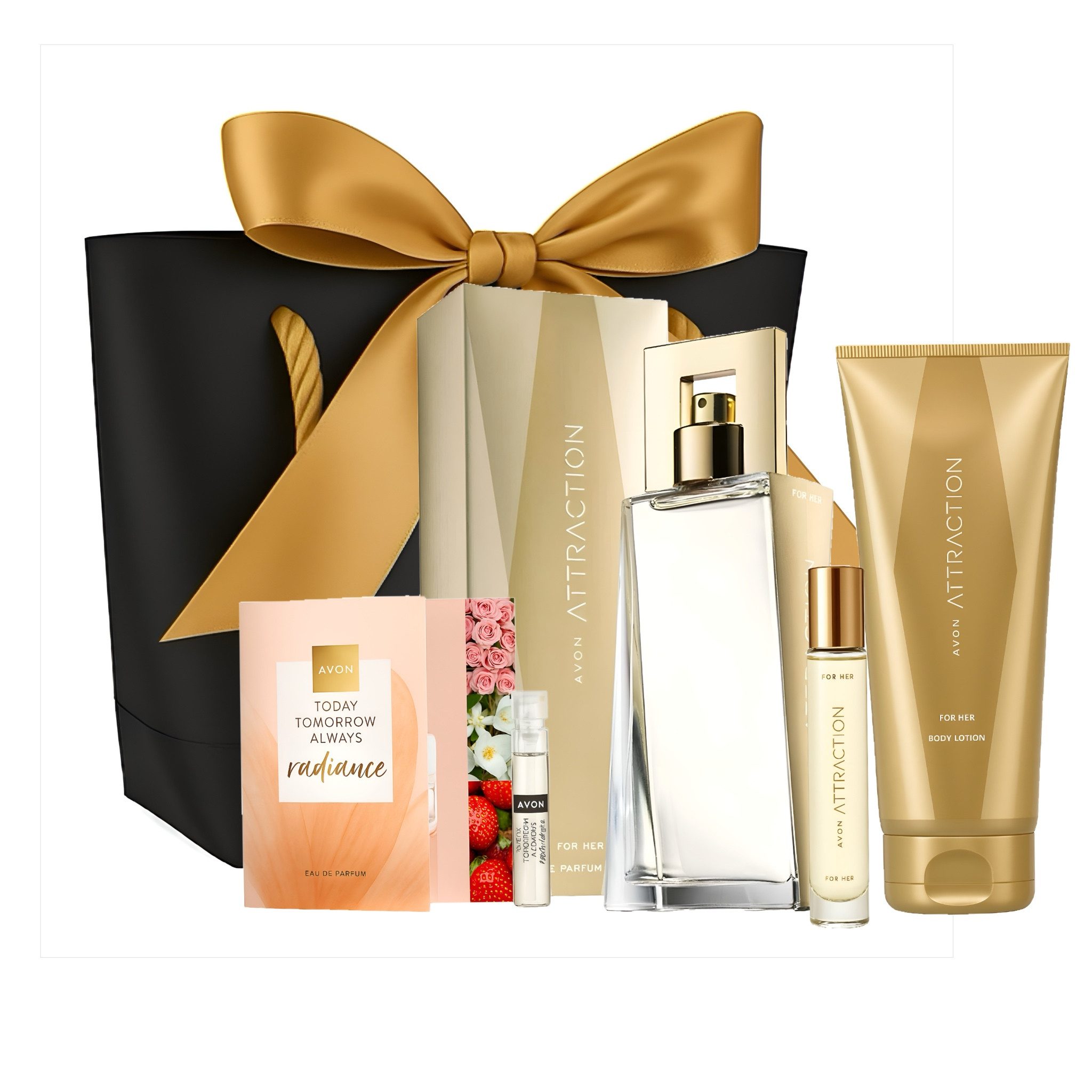 Duftrichtung | Die Duftrichtung des AVON ATTRACTION Geschenksets für Damen ist eine verführerische Kombination aus blumigen und orientalischen Noten. Die Kopfnote eröffnet mit fruchtiger Brombeere und einem Hauch von rosa Pfeffer, gefolgt von einer Herznote aus faszinierendem Jasmin, schwarzer Orchidee und klassischem Moschus. Die langanhaltende Basisnote besticht durch magnetischen Moschus und Vanille-Amber, die dem Duft Tiefe und Sinnlichkeit verleihen. |
