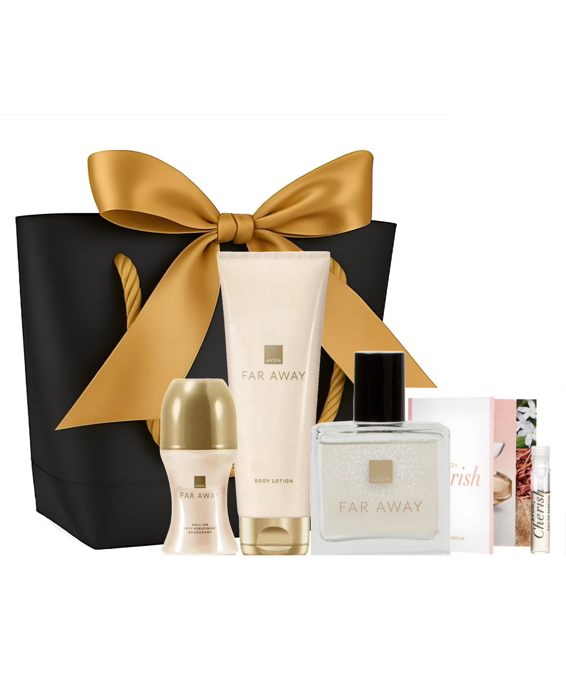 Lieferumfang | 1 x Eau de Parfum 30 ml 1 x Roll-On-Deodorant 50 ml 1 x Bodylotion 125 ml 1 x Geschenktasche schwarz mit goldener Schleife 1 x Duftprobe |