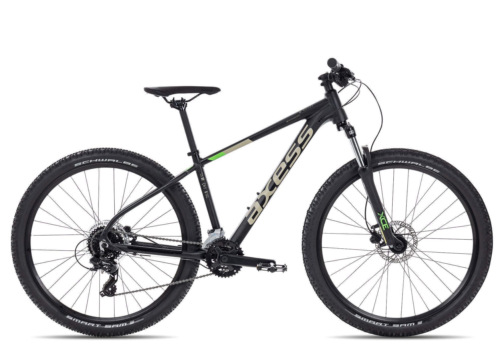 Mit dem Axess BRASH bekommst du ein Einstiegs-Mountainbike mit einer guten Kombination aus Preis und Leistung. Hydraulische Scheibenbremsen und eine 100 mm Federgabel sind am Brash hervorzuheben.
