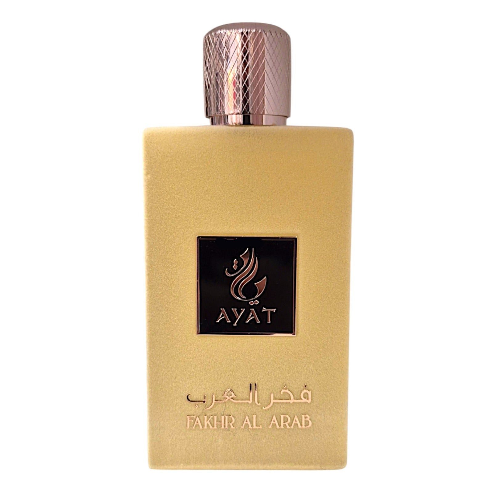 Ayat FAKHR Al Arab Eau de Parfum 100ml vereint frische Kopfnoten von Bergamotte, Apfel und Birne mit blumigen Herznoten von Orangenblüte, Jasmin und Heliotrop. Die Basisnoten aus trockenem Holz, Ambroxan und Vanille verleihen dem Duft Tiefe und Wärme. Ideal für Liebhaber eleganter und harmonischer Parfums.