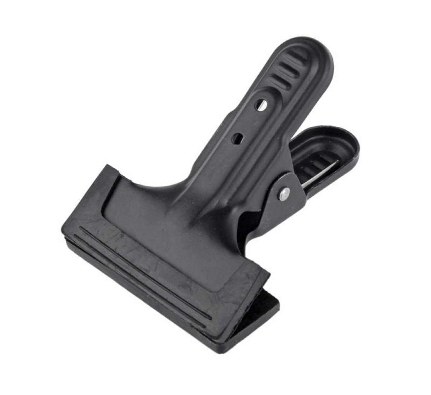 Dieser stabile Clip aus Metall ist ein vielseitiger Helfer, wenn es um die Befestigung von Zubehör geht. Er hält Hintergründe und anderes, auch schweres Material und kann an vielen Gegenständen festgeklemmt werden, z. B. am Tisch, Stuhl oder Stativ! Durch die Löcher an den Griffen lassen sich außerdem Befestigungsschnüre ziehen.