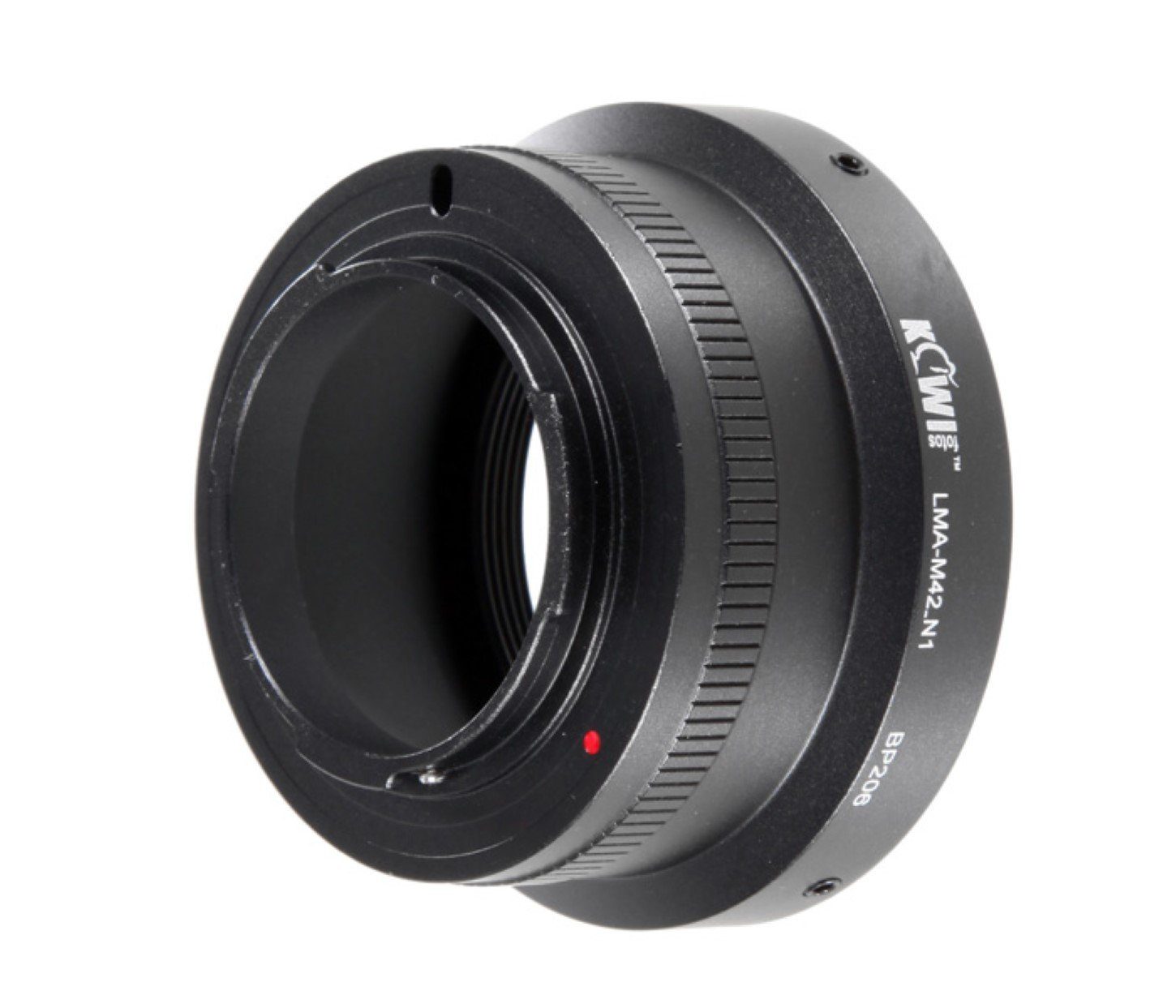 Dieser Adapter aus eloxiertem Aluminium mit verchromtem Messingring erlaubt die Anbringung von M42 Objektiven an Pentax Kameras. Das Einrasten des Adapters ins Bajonett Ihrer Kamera garantiert optimalen Halt und Schutz vor Überdrehen des Adapters. Er ist präzise gefertigt und sehr stabil, allerdings nicht für Balgengeräte, Diaduplikatoren etc. geeignet.