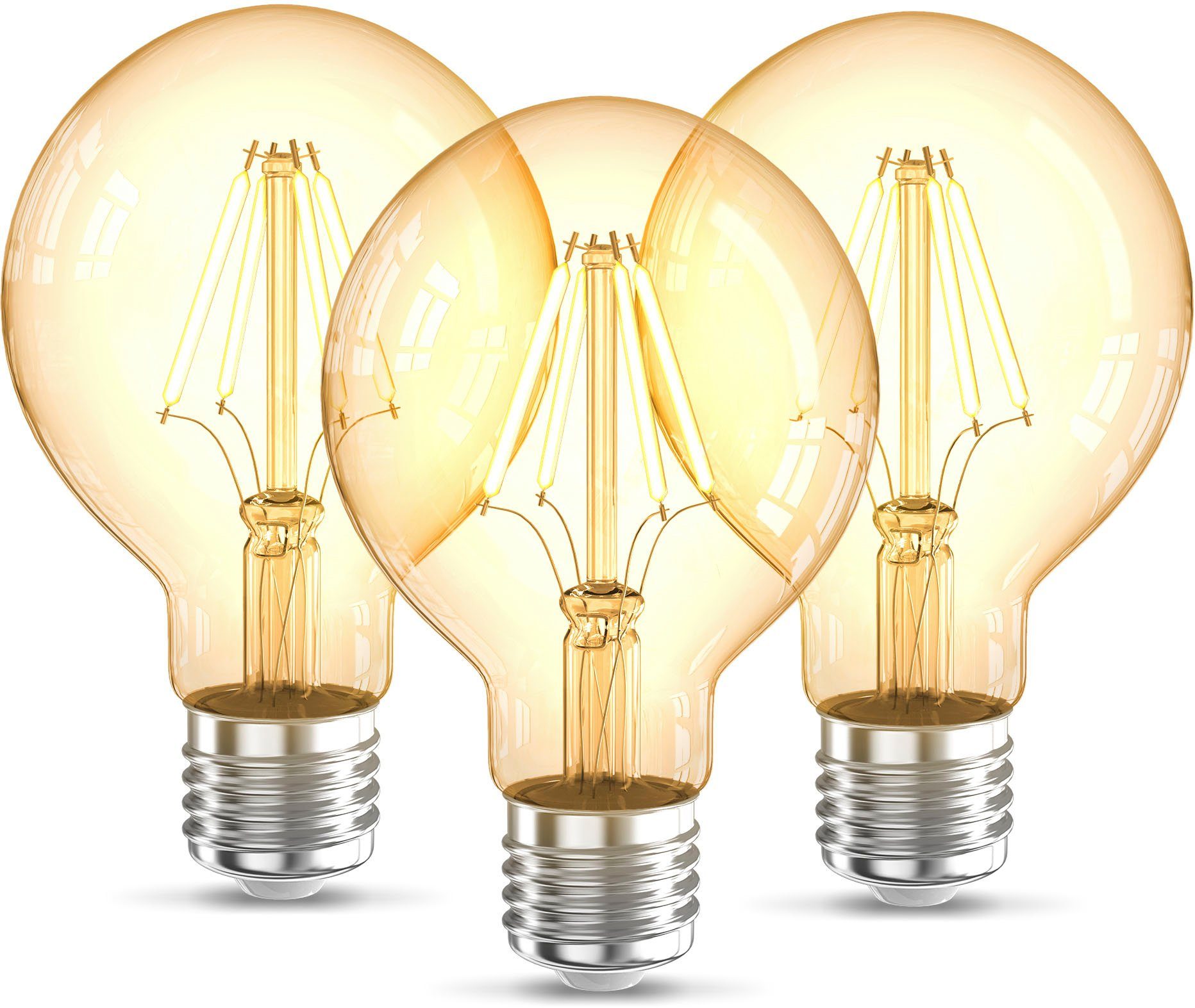 Sie erhalten dieses dekorative Leuchtmittel im praktischen 3er Set. Das dezent in Bernstein gefärbte Glas verstärkt den Retro-Look und erzeugt eine gemütliche, entspannte Atmosphäre.