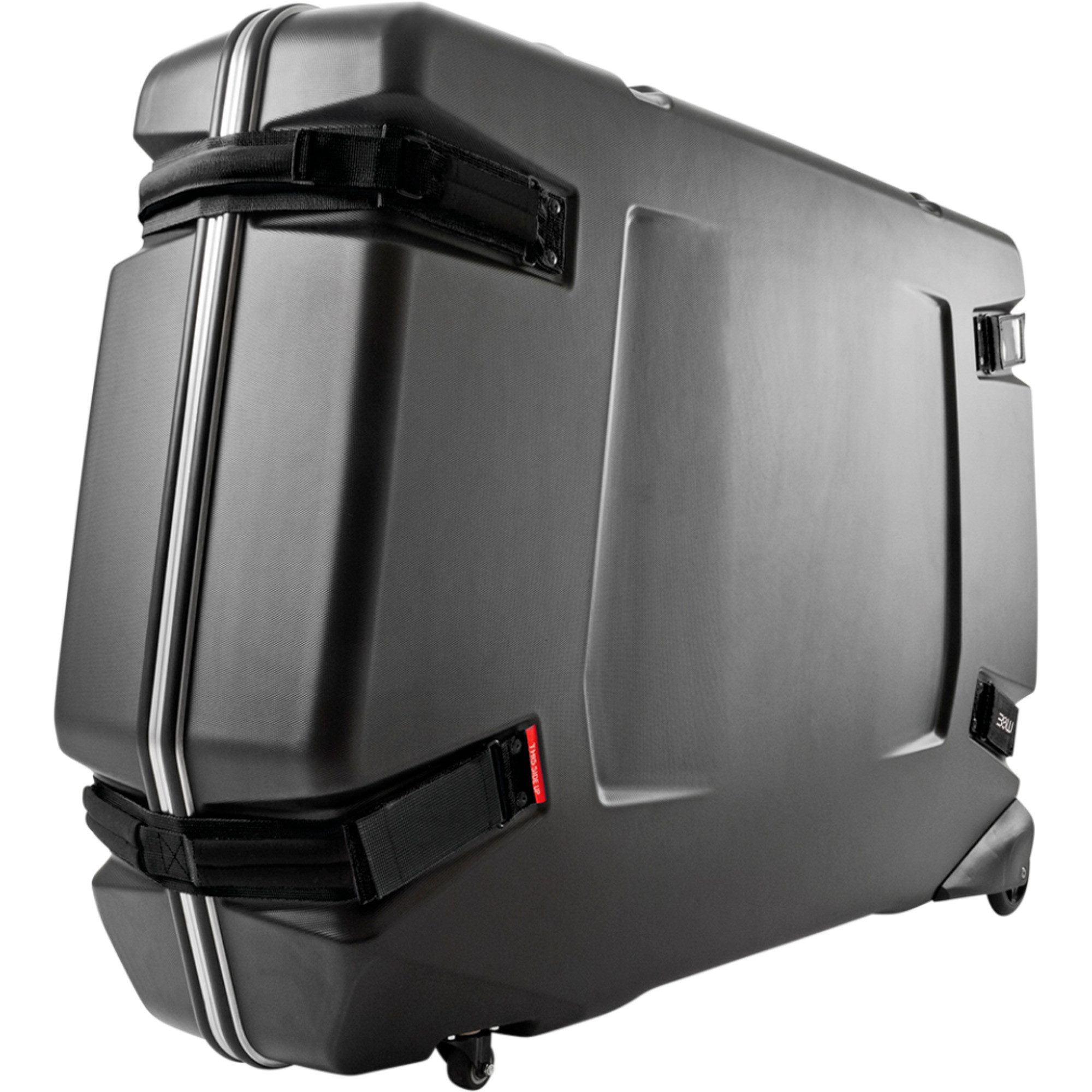 Der Nachfolger für das bike case. von B&W ist jetzt verfügbar. Der große Schalenkoffer eignet sich für den Transport von Rennrädern, Triathlon-Rädern und Mountainbikes bis zu 29". Der Koffer bietet leichtes Packen durch die komplett abnehmbare Deckelschale. Das Fahrrad wird im Inneren mit Gurten befestigt und durch mehrere Schaumlagen geschützt. Vier stabile Leichtlaufrollen (zwei drehbar, zwei fest) sorgen für einen leichten Tranport. Zur weiteren Ausstattung gehören vier Griffe: ein verstellbarer Ziehgriff sowie ein Ziehgriff zum Ziehen auf zwei Rollen, zwei Tragegriffe. Die abnehmbare Drehschale ermöglicht leichtes Packen. Der selbst spannender Gurtverschluss erleichtert das Спрятать des Koffers und schützt gleichzeitig vor dem Aufspringen des Koffers. Die abschließbaren TSA-Schlösser sorgen für zusätzliche Sicherheit (TSA Schloss (nicht im Lieferumfang enthalten)).