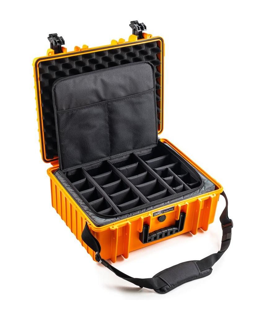 B&W Transportkoffer Outdoor Typ 6000 orange mit Fototasche - wasserdicht nach IP67 Zertifizierung, staubdicht, bruchsicher und unverwüstlich