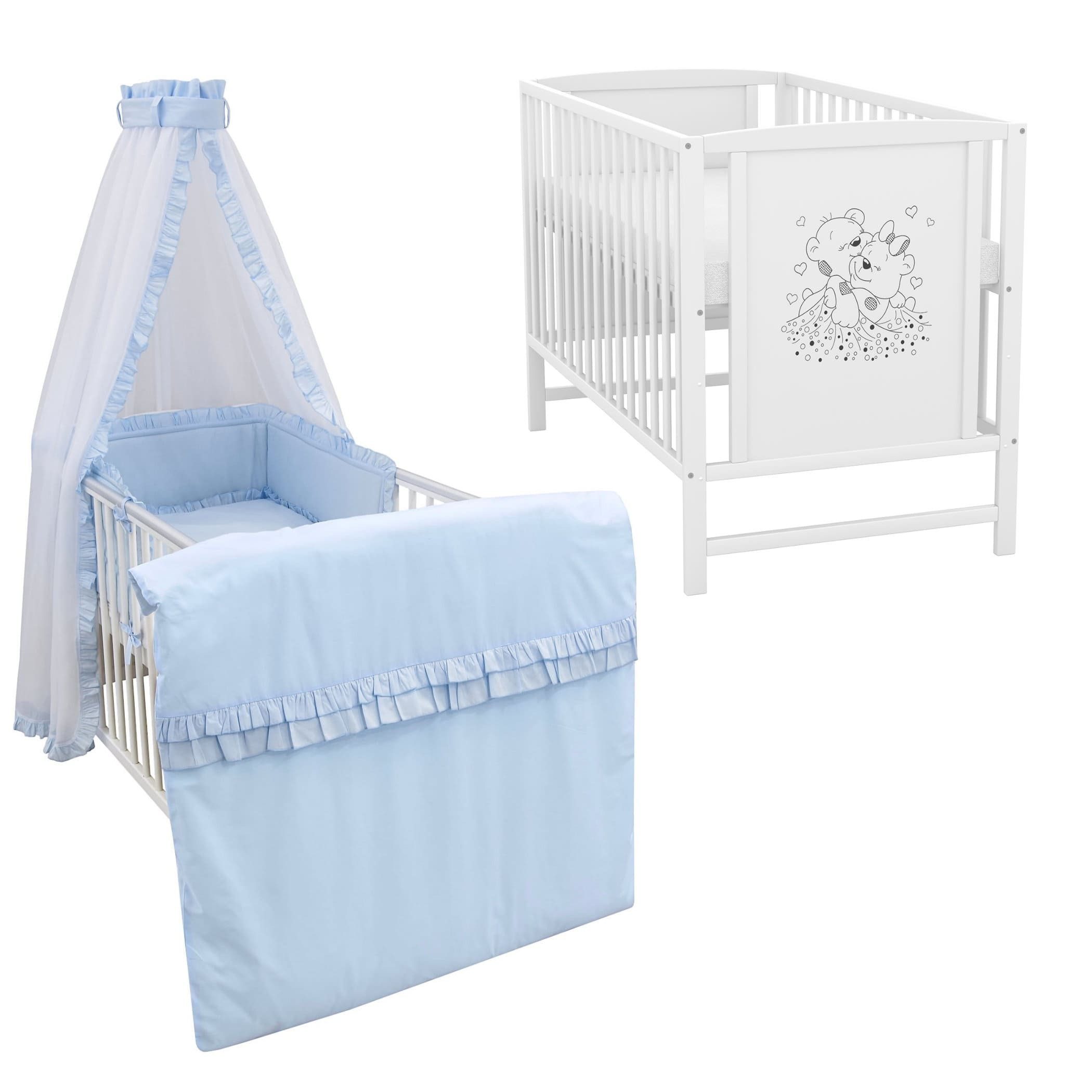 Das Babybett Mia besticht durch sein zeitloses und elegantes Design in strahlendem Weiß. Die Vorderseite des Bettes wird durch ein entzückendes Teddy-Motiv verziert, das jedem Raum einen Hauch von Wärme und Geborgenheit verleiht. Hergestellt aus massivem Kiefernholz – mit Ausnahme der Einschübe an der Stirnseite – garantiert dieses Bett nicht nur Stabilität, sondern auch Langlebigkeit.