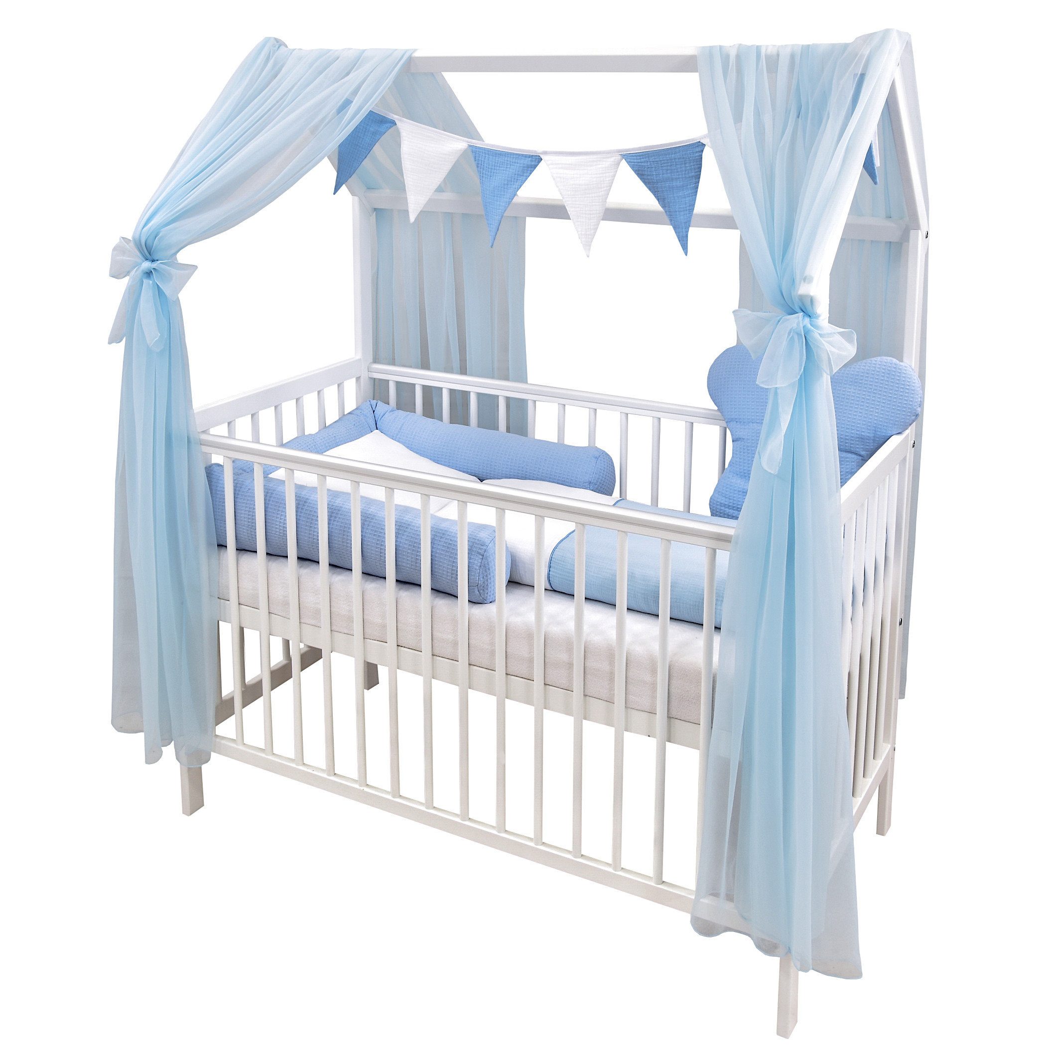 Der Himmel besteht aus feinem Musselin, einem besonders luftigen und zarten Stoff, der eine beruhigende und angenehme Schlafumgebung schafft.
