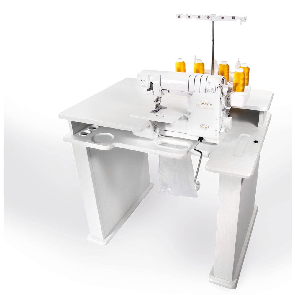 Die drei integrierten magnetischen Ablagen halten Scheren und Nadeln immer Griffbereit, während der Stauraum unter dem Arbeitstisch Platz für Nähuntensilien wie Garnrollen und Nadeln bietet. Durch die hochwertigen Einzelteile, die beim Bau dieses Nähmöbels verwendet wurden, ist die Bedienung komfortabel und leise, so lässt sich die Tischplatte auch im Sitzen ganz einfach öffnen und schließen. Durch die eingebauten Dämpfer gleitet sie sanft in ihre Ausgangsposition zurück. Die eingebaute Halterung für den Abfallbeutel und Aussparungen für Kabel sorgen auf deinem neuen Arbeitsplatz für Ordnung.
