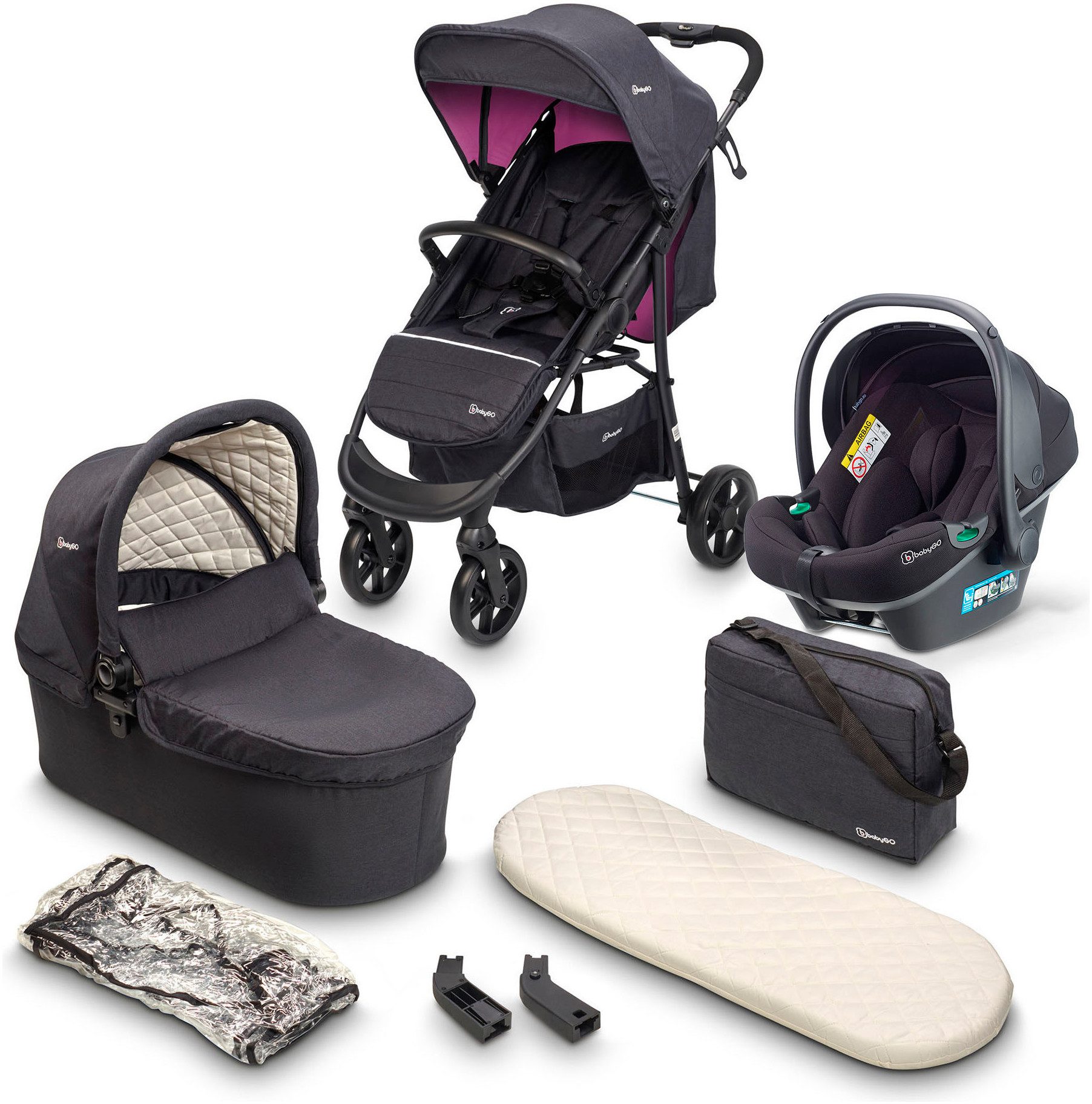 Lieferumfang | Adapter Babyschale Babywanne Bedienungsanleitung Einkaufskorb Kinderwagen Matratze Regenschutz Sportwagenaufsatz |