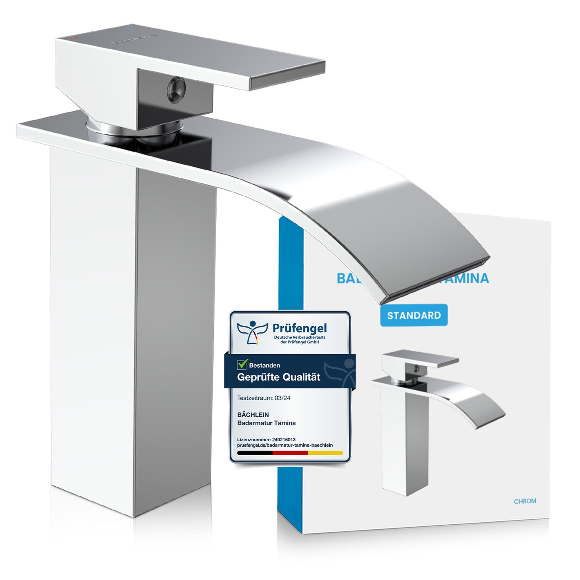 Erleben Sie ein neues Highlight in Ihrem Badezimmer mit der Bächlein Wasserfall-Badarmatur Tamina. Diese außergewöhnliche Waschtischarmatur vereint modernes Design und herausragende Funktionalität in einem stilvollen Paket. Die markante Wasserfalloptik der Armatur verleiht Ihrem Waschbecken eine einzigartige Note und sorgt für einen visuell beeindruckenden Wasserstrahl, der sich angenehm weich auf Ihrer Haut anfühlt.