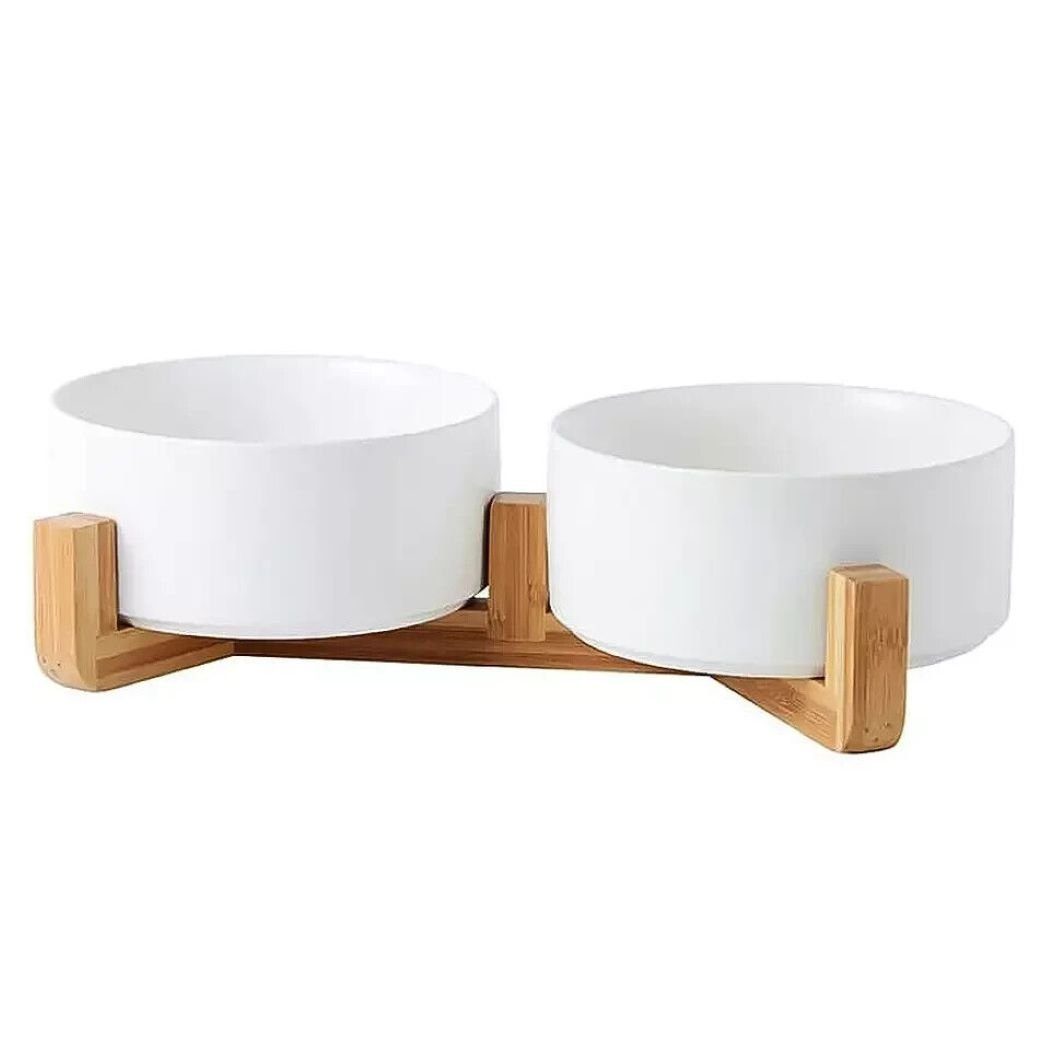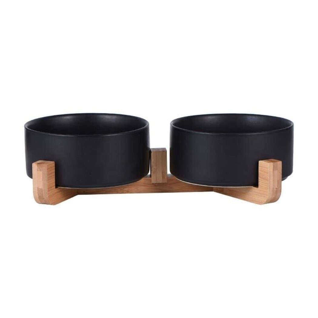 Ausstattung | rutschfestes Bambus Gestell 2 Keramik Näpfe m. Lotus Effekt |