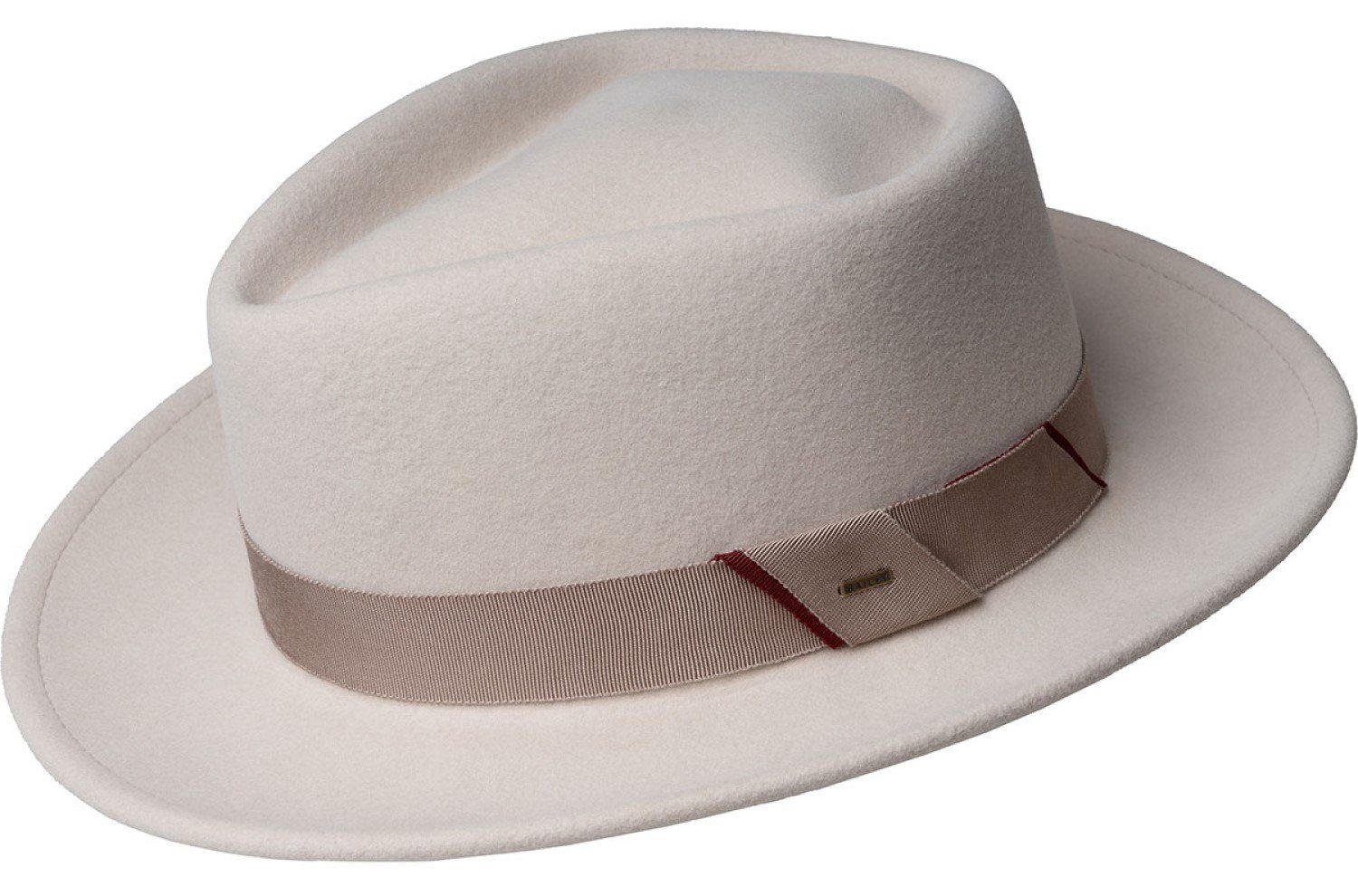 - Den wasserabweisenden Filzhut aus reiner Wolle zeichnet seine dezente Gestaltung mit modisch passender, zweifarbiger Ripsband-Garnitur aus
