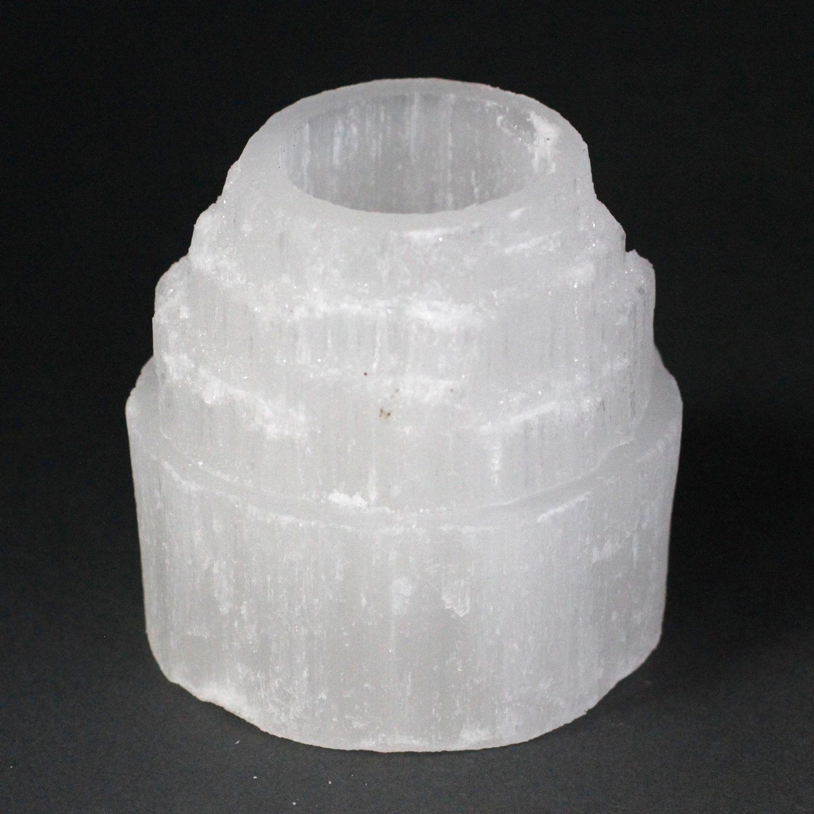 Unsere Selenit Kerzenhalter Bergspitze -8cm ist umwerfend! Da Selenit eine Art durchscheinender Kristall ist, lässt es die Kerzenflamme sanft durch ihre Wände streichen. Die Kanten der Kerzenhalter sind rau, was für die Selenität natürlich ist. Diese Selenit-Kerzenhalter sind glänzend, manchmal mit weißeren Bereichen. Der obere Teil jedes Kerzenhalters ist poliert und die untere Seite ist gerade geschnitten. Diese Kerzenleuchter sind wirklich schöne Dekorationen für jedes Haus. Hinweis: Aufgrund der Beschaffenheit dieser Artikel und ihres Herstellungsverfahrens können diese Produkte geringfügig von den Abbildungen abweichen.